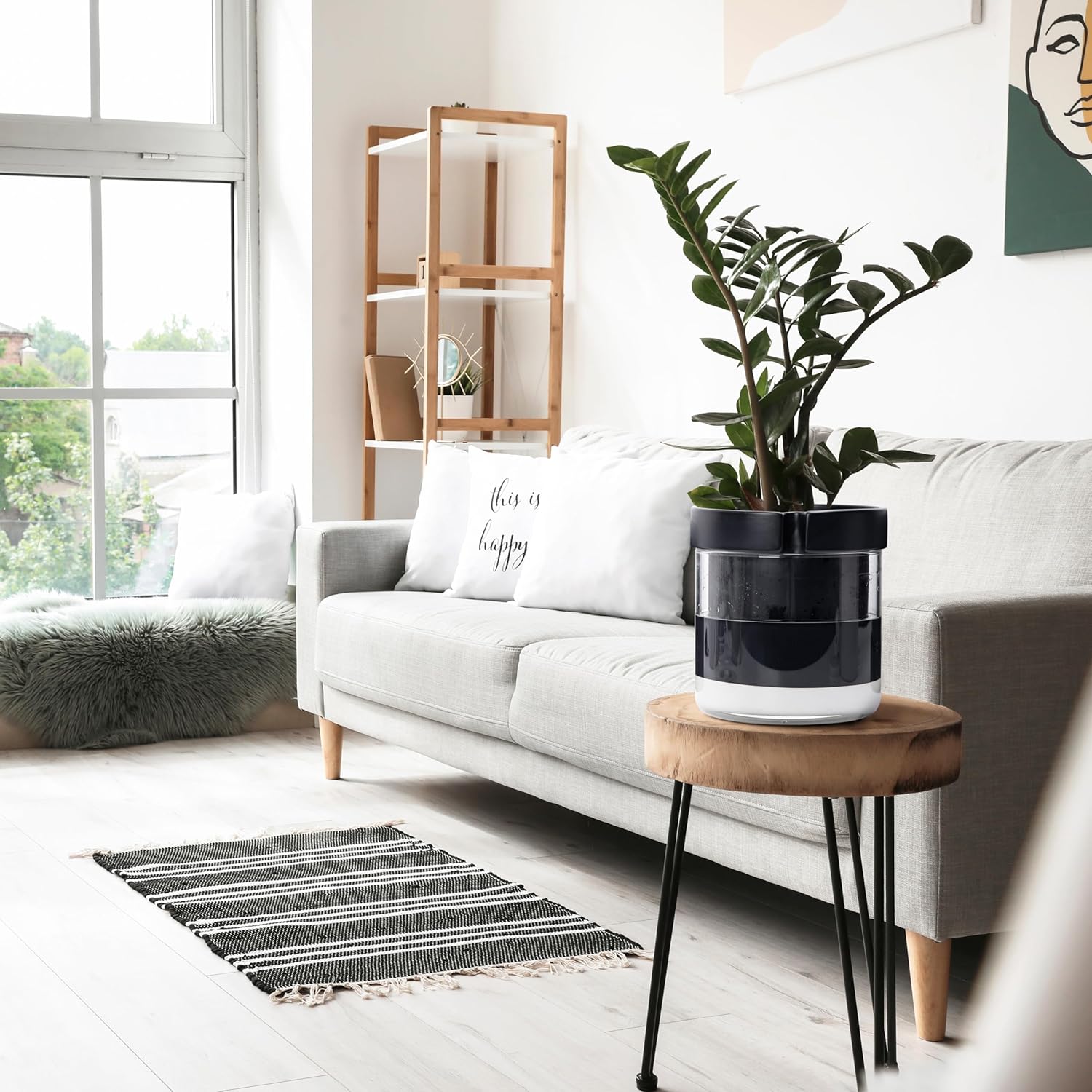Phoenix Vine 8 Inch Self Watering Terracotta Planter, Black Terracotta Clay Pot with Glass Reservoir for Indoor Plants, Herbs, Flowers, Set of 1, 52-C-H-1