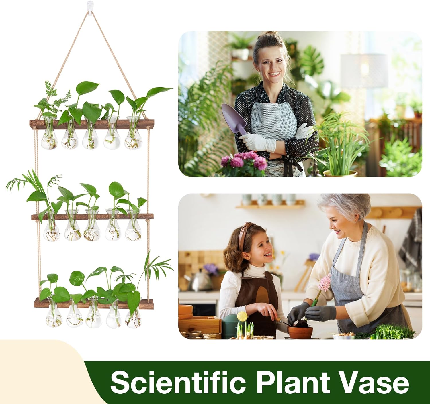 XXXFLOWER Wall Hanging Propagation Station with Wooden Stand 5 Bulb Vase 3 Tiered Planters Wall Terrarium for Home Office Plant Hanger Flower Vases Wall Decor(Brown)