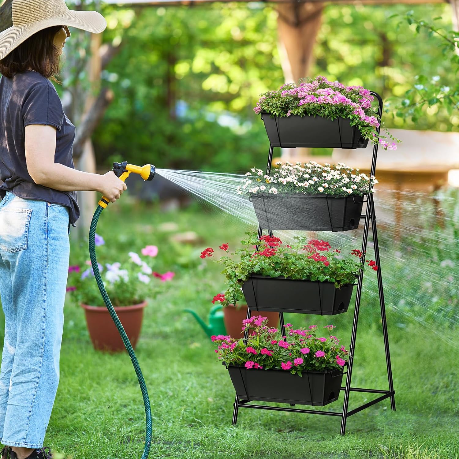 Vertical Garden Planter 4 Tier Planters for Outdoor Plants Vertical Raised Garden Bed with Drainage Holes Herb Garden Planter Outdoor Indoor Patio Yard Balcony (Black)