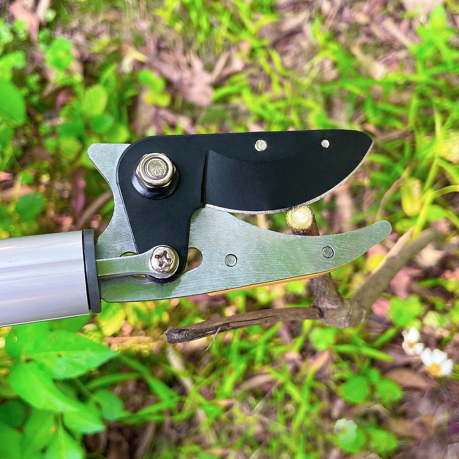 - Telescopic tree trimmer 2-in-1 function, sturdy aluminum alloy pole saw and pruner has 3 section length adjustable, from 4.5 expand to 10 foot, ideal for pruning high soft stems, small branches, twigs and shrubs, even picking fruits, without having to bend and kneel, without climbing a ladder, easy low cut or reaching into dense/prickly bushes