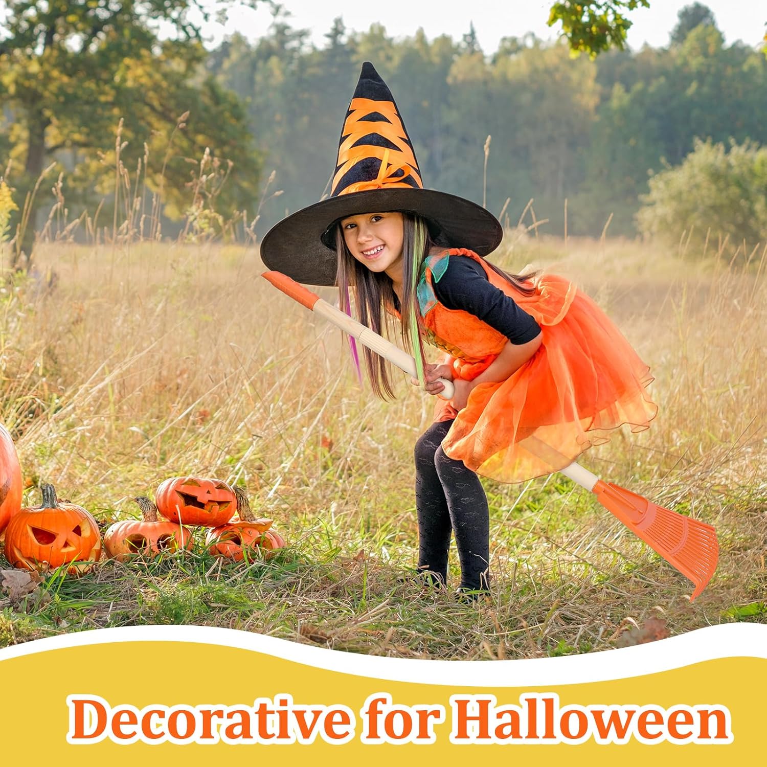 Therwen 8 Pcs Kids Rake 31" Child Size Plastic Lawn Rakes for Leaves Small Rake with Plastic Head and Wooden Handle Toddler Kid Gardening Tools for Leaves Gardening Camping(Orange)