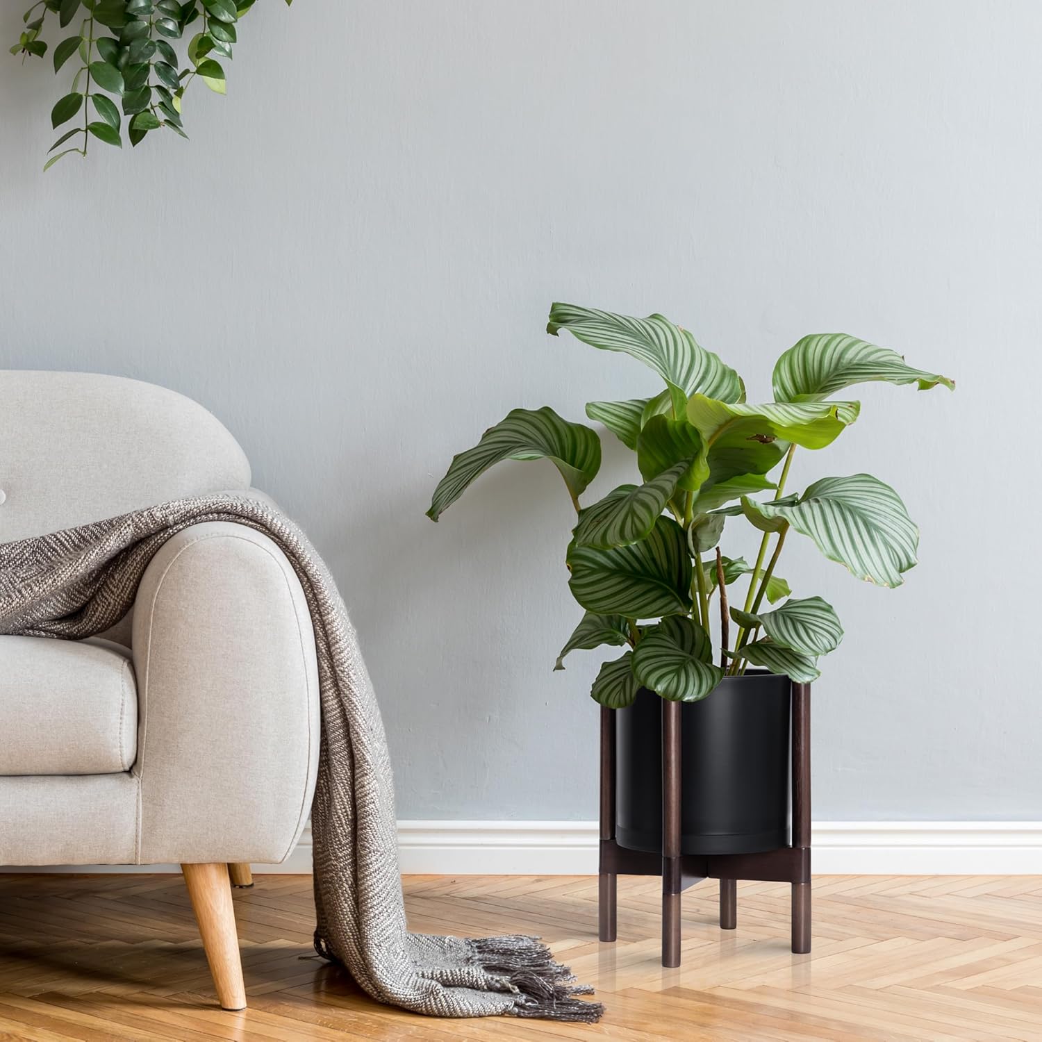 - A Complete Set: Minimalist plastic planter, combined with a sculptural, solid wood stand that match perfectly together and looks great in any home.