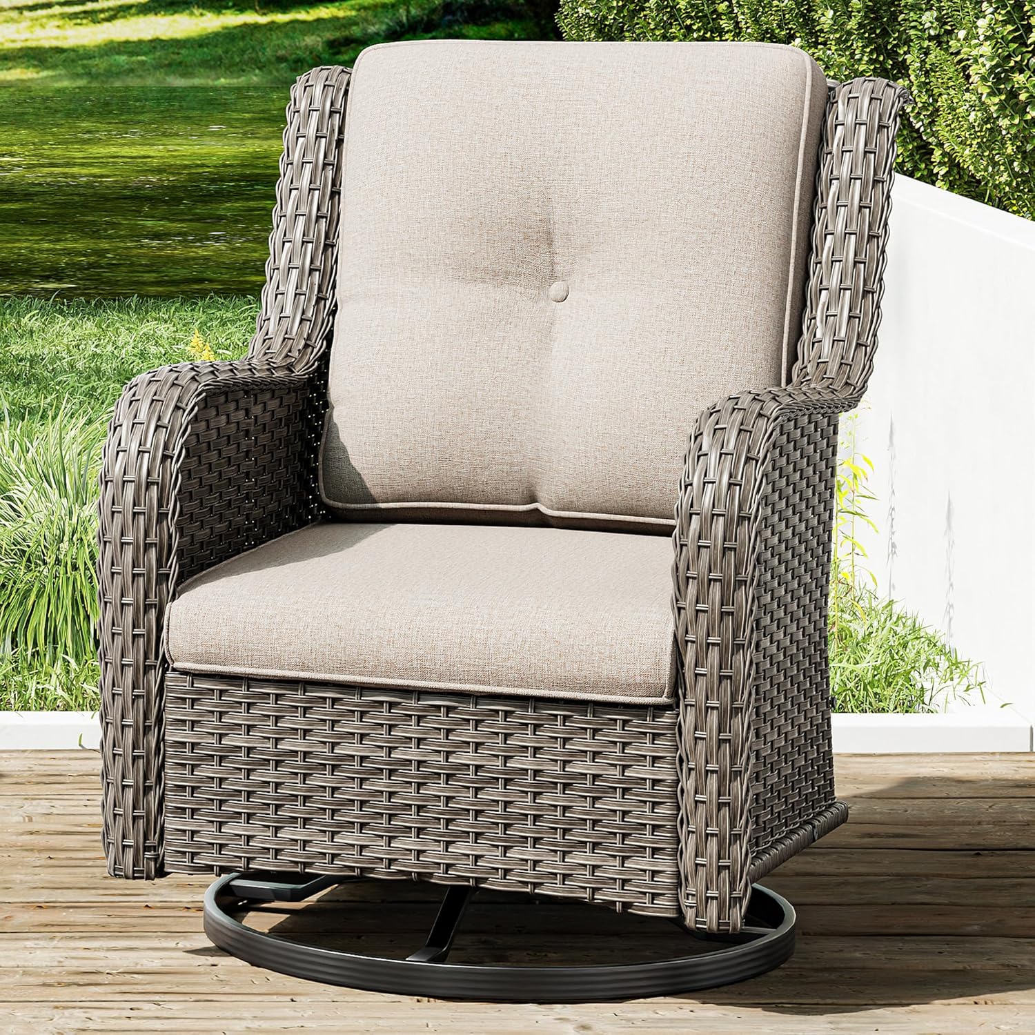 Joyside Outdoor Swivel Rocker Patio Chair - Outdoor Wicker Glider Rocking Chair with Olefin Fabric Cushions Suitable for Porch Deck and Backyard(Mixed Grey/Beige)