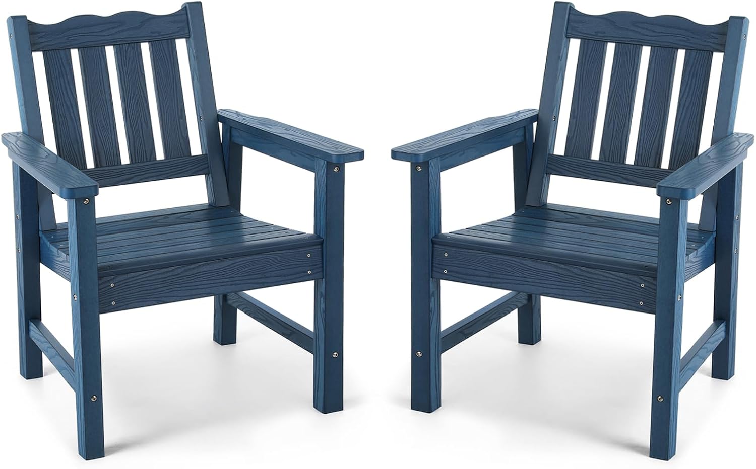 Stoog All-Weather Patio Chairs Set of 2, Heavy Duty Outdoor Chairs with 400 lbs Weight Capacity, Garden Chair for Backyard, Deck, Lawn & Porch, Blue