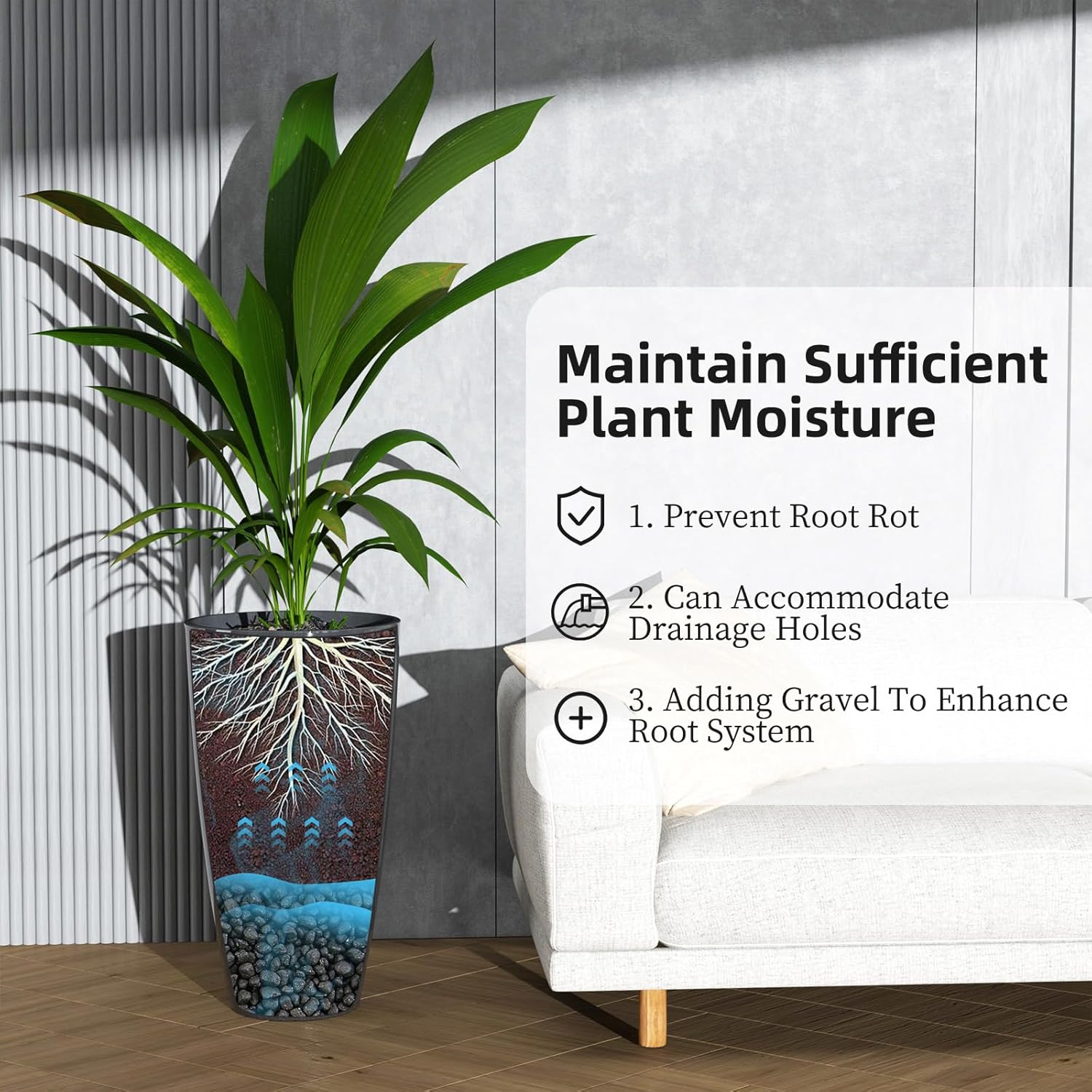 - SIZE: 11.8" Dia. x 21" H. - The bottom is designed with a drainage hole to help excess water drain away and promote healthy growth of plants