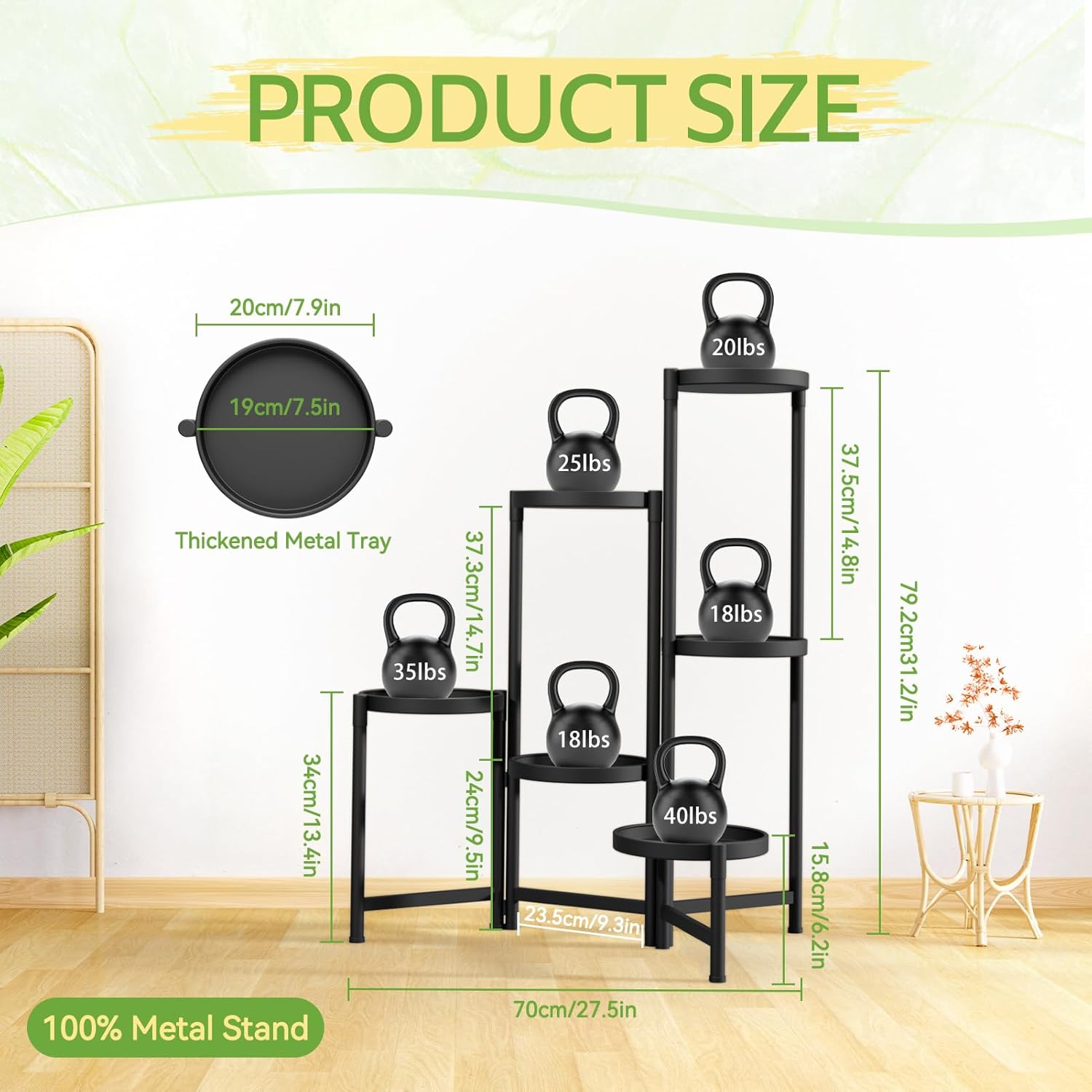 - 7.9-Inch Wide Trays with Rim: This tall plant stand features 7.9-inch round trays, suitable for pots up to 7.5 inches wide. Each tray is designed with raised edges that guard against spills and tipping, keeping your plants safe and steady