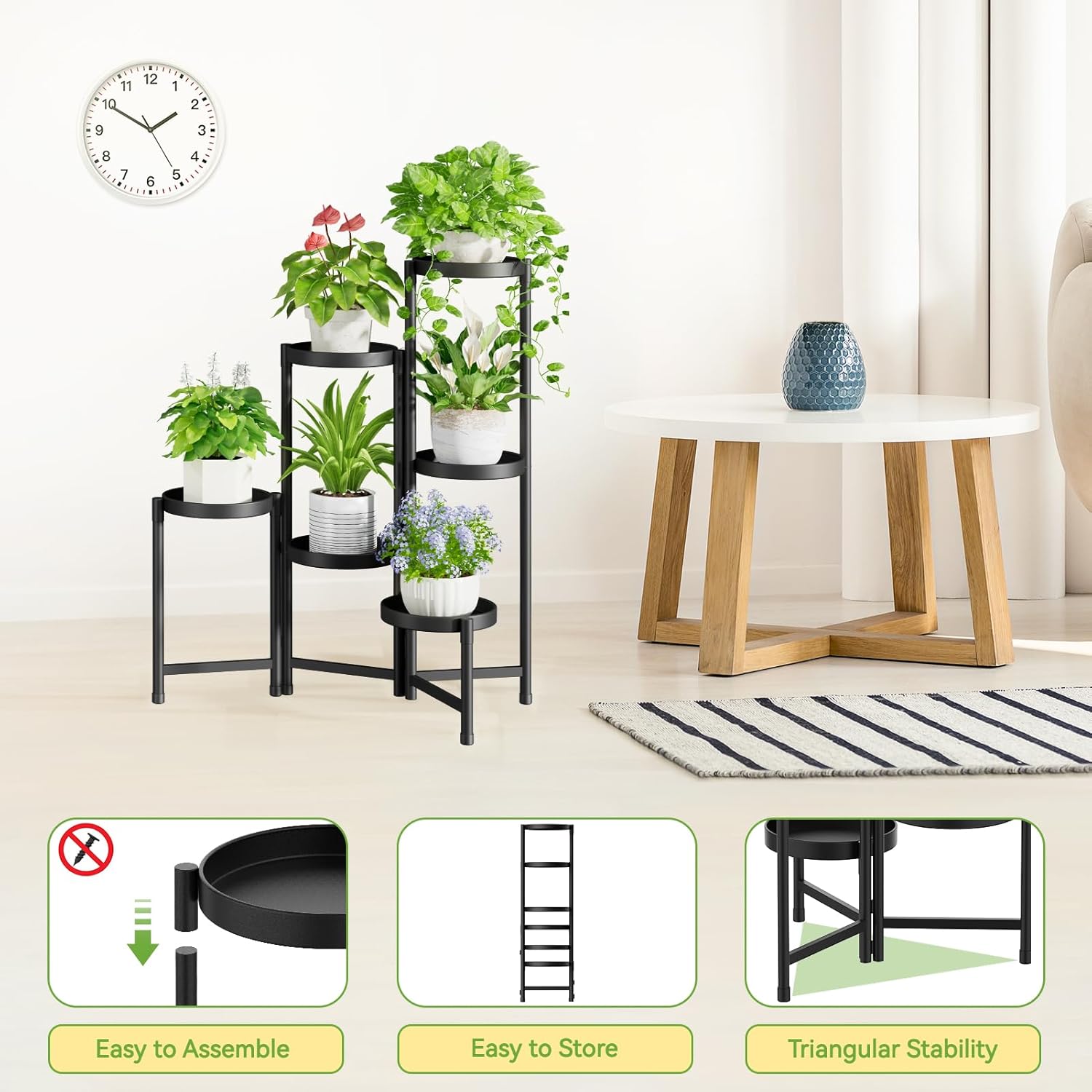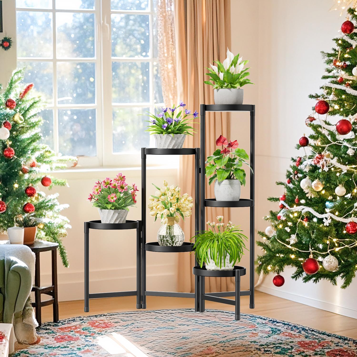 iDavosic.ly Plant Stand Indoor Outdoor, 6 Tier Corner Metal Flower Display Holder Shelf, Folding Tall Orchid Rack for Patio Balcony Porch Garden Living Room House, Black