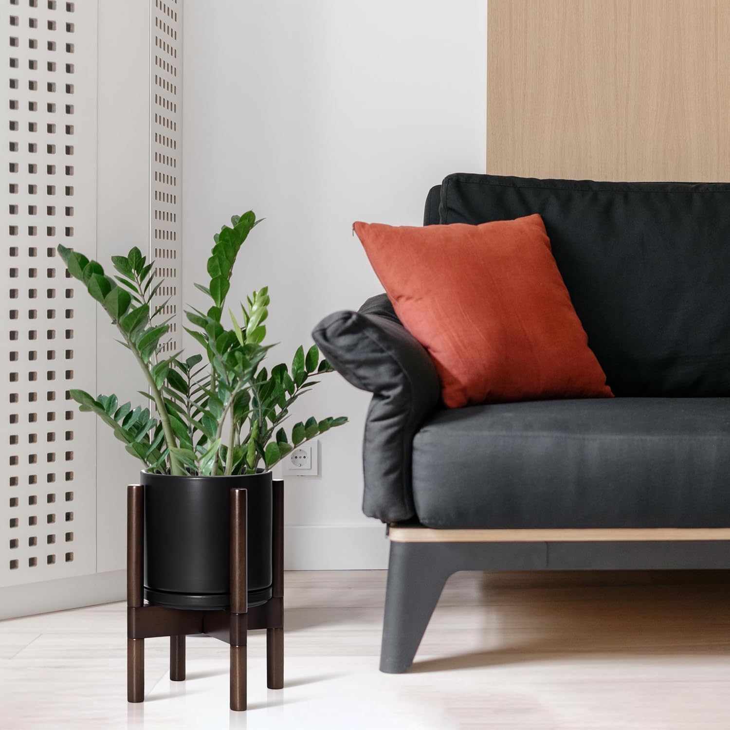 - A Complete Set: Mid-century ceramic planter, combined with a sculptural, solid wood stand that match perfectly together and looks great in anywhere.