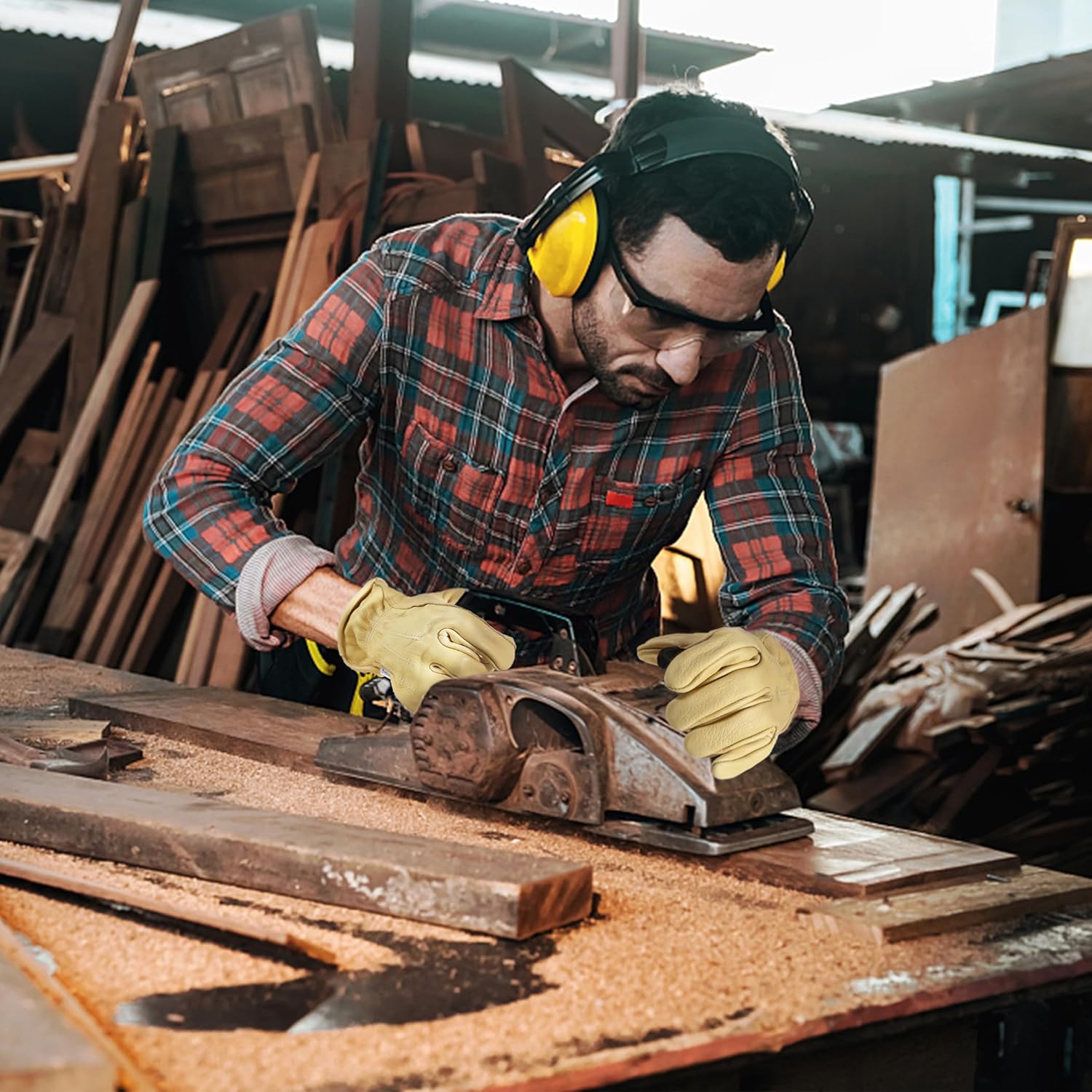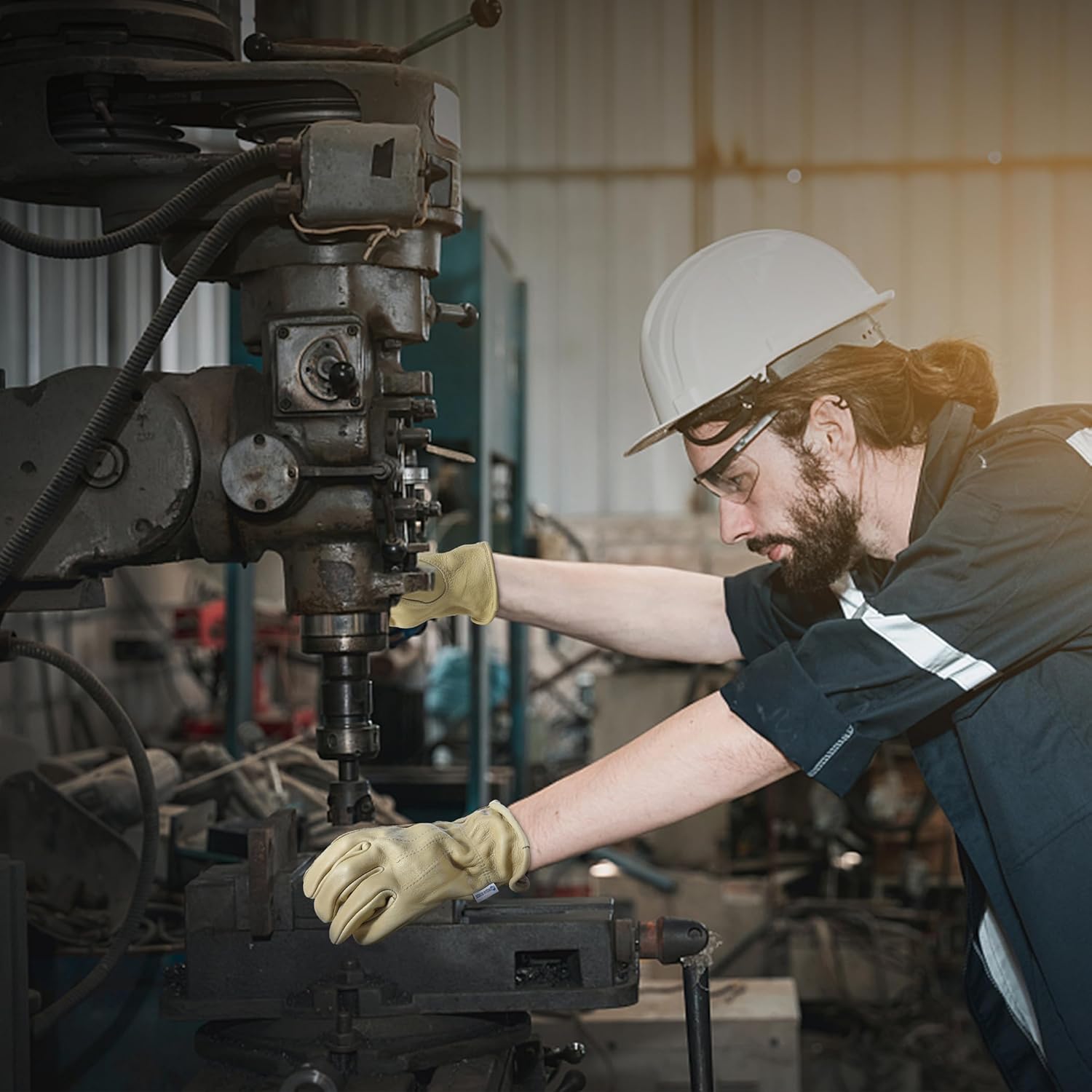 - Cowhide Leather Work Gloves - 100% genuine cowhide leather, nature tanning, waterproof technology, comfortable and durable. High-quality thick cowhide material, superior abrasion and puncture resistance protect your hands from cuts and scratches.