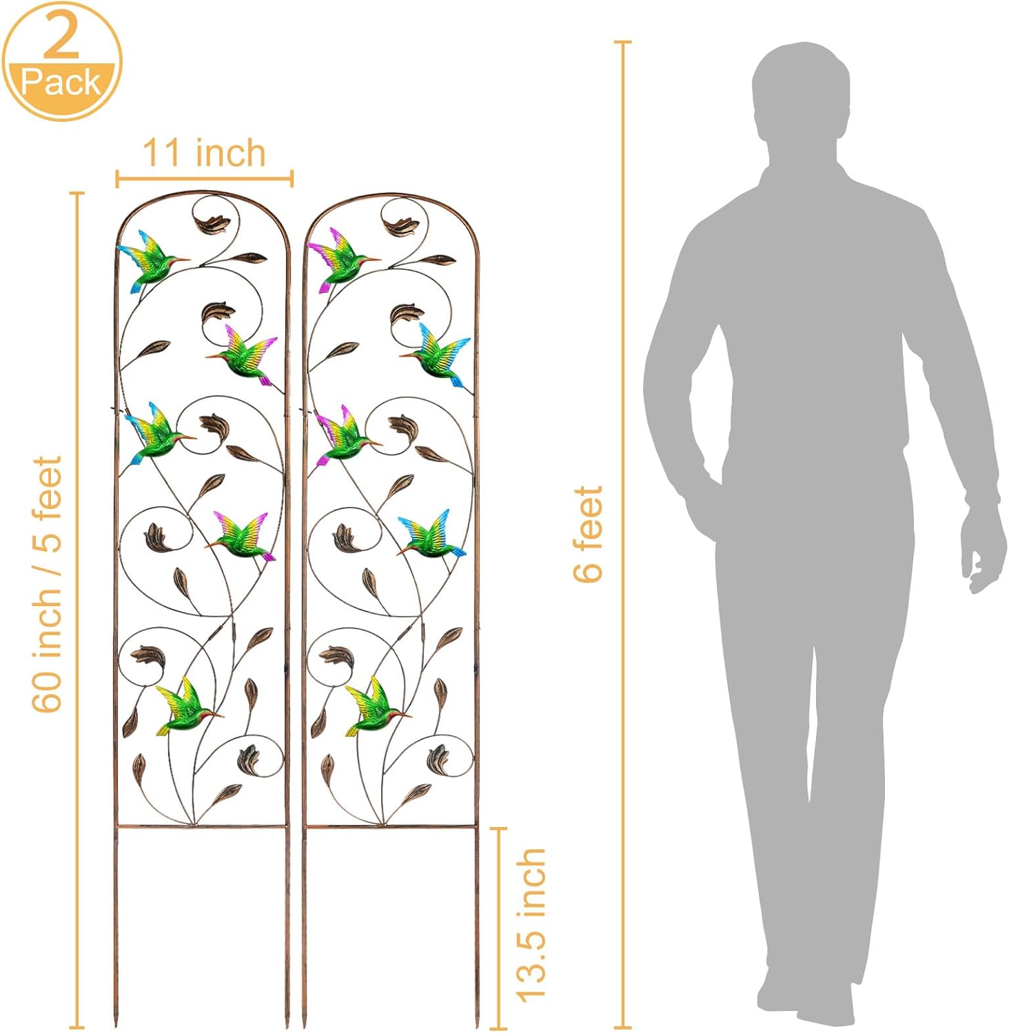 LEWIS&WAYNE 2 Pack Metal Garden Trellis with Colorful Hummingbird 60 Inch High Outdoor Decoration Arched Fence Trellis for Climbing Plants for Patio, Lawn, Yard, Backyard, Wall Brackets