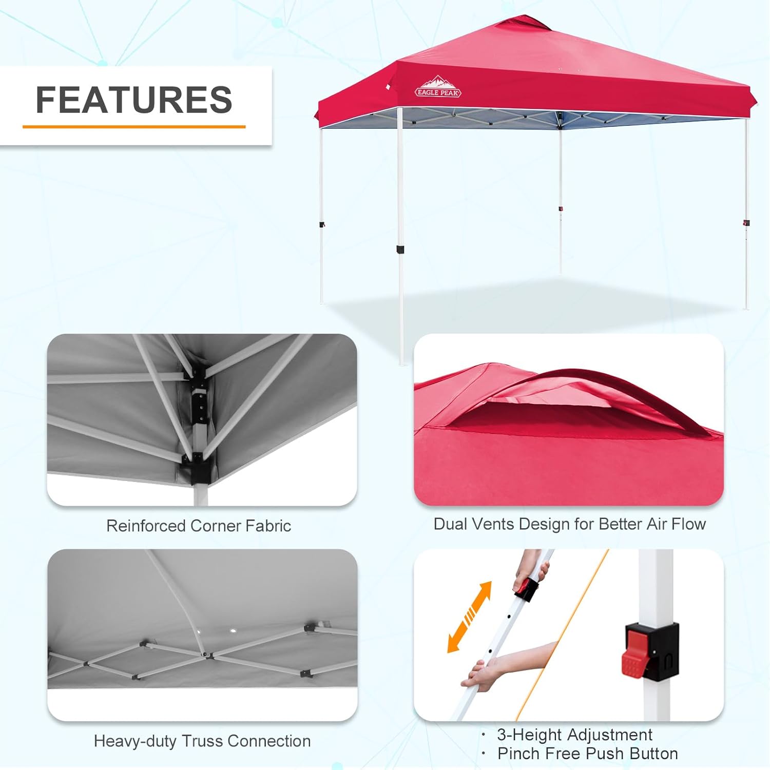 - EAGLE PEAK PROMISE: EAGLE PEAK offers 1-year limited after sale protection from the date of purchase. Unlike many other canopy sellers, EAGLE PEAK offers this for our frames, tops and bags! Please contact our professional service team with any questions