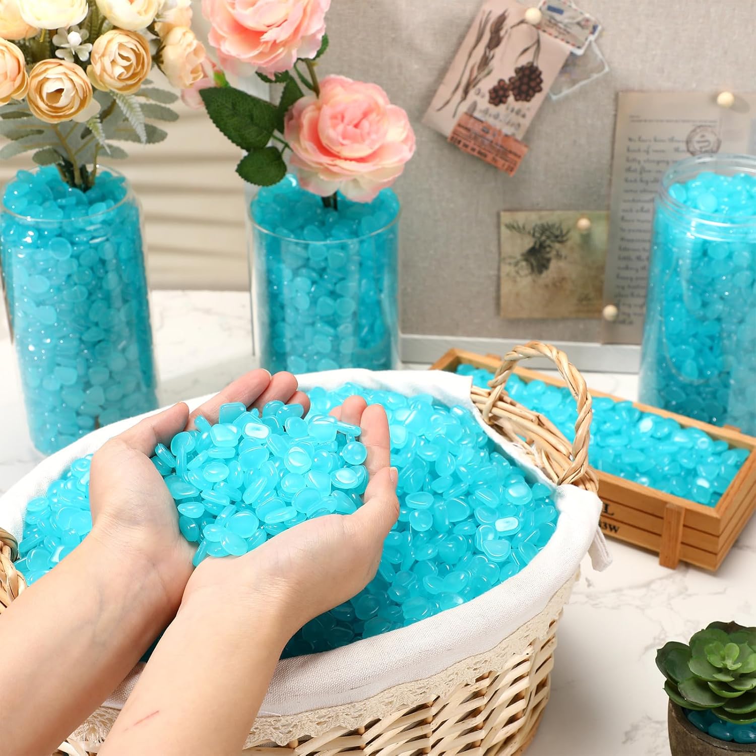 - Proper Size: with a measurement of 0.3-0.4 inch each, these glow in the dark rocks are built to sit well in various settings, like garden pathway, aquarium, or a decorative indoor jar; Their size allows them to be easily moved around to attain desired aesthetics, making them delightful decors at different places