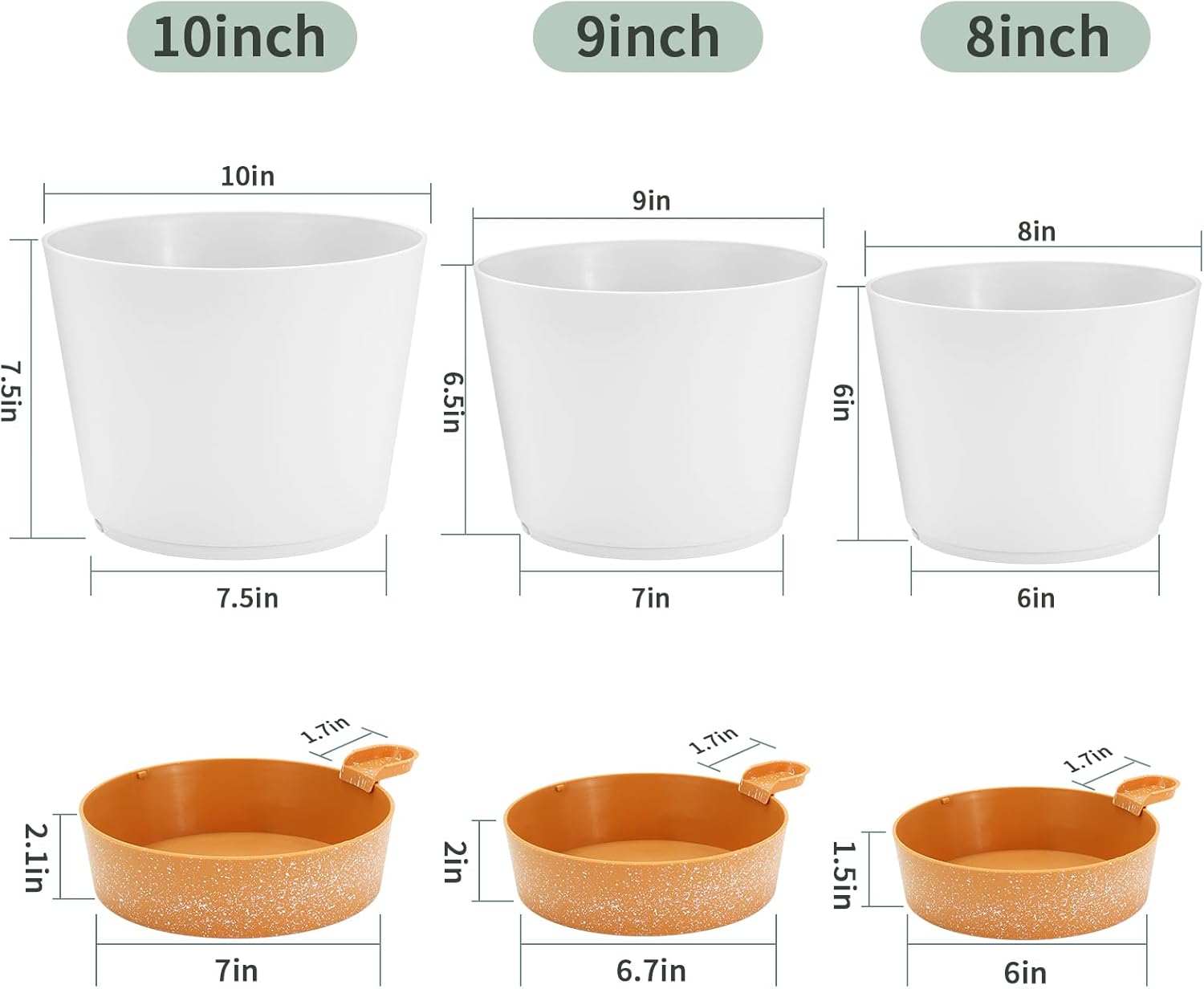 GARDIFE 10/9/8 inch Plant pots, planters for Indoor Plants, self Watering Plant Pot, Flower pots, White