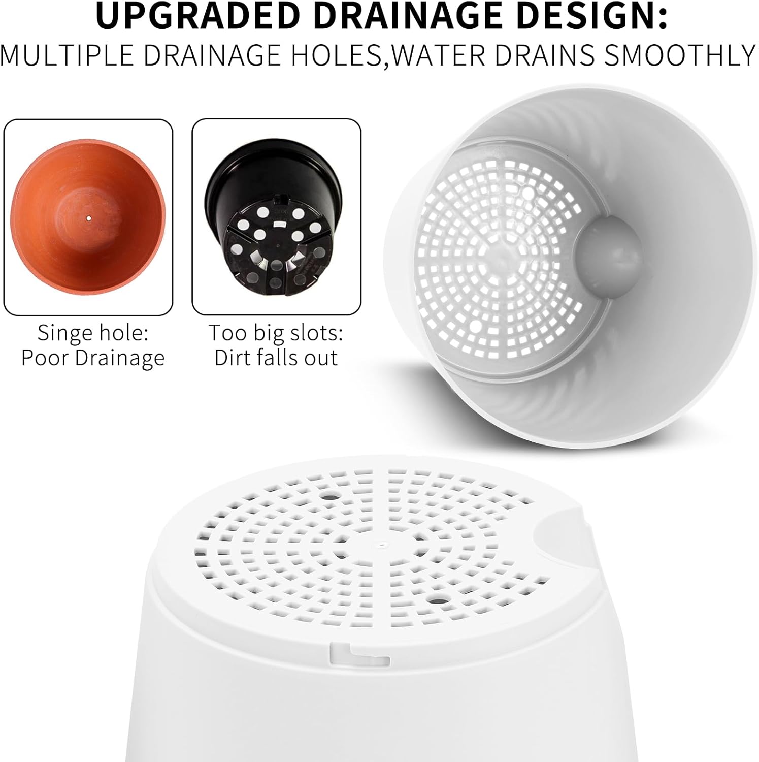 - 【Excellent Drainage Holes】The pot for plants come with multiple drainage holes in the bottom. The holes provide an air circulation system for the plant roots, which greatly reduces the problem of root rot of plants in a closed environment.