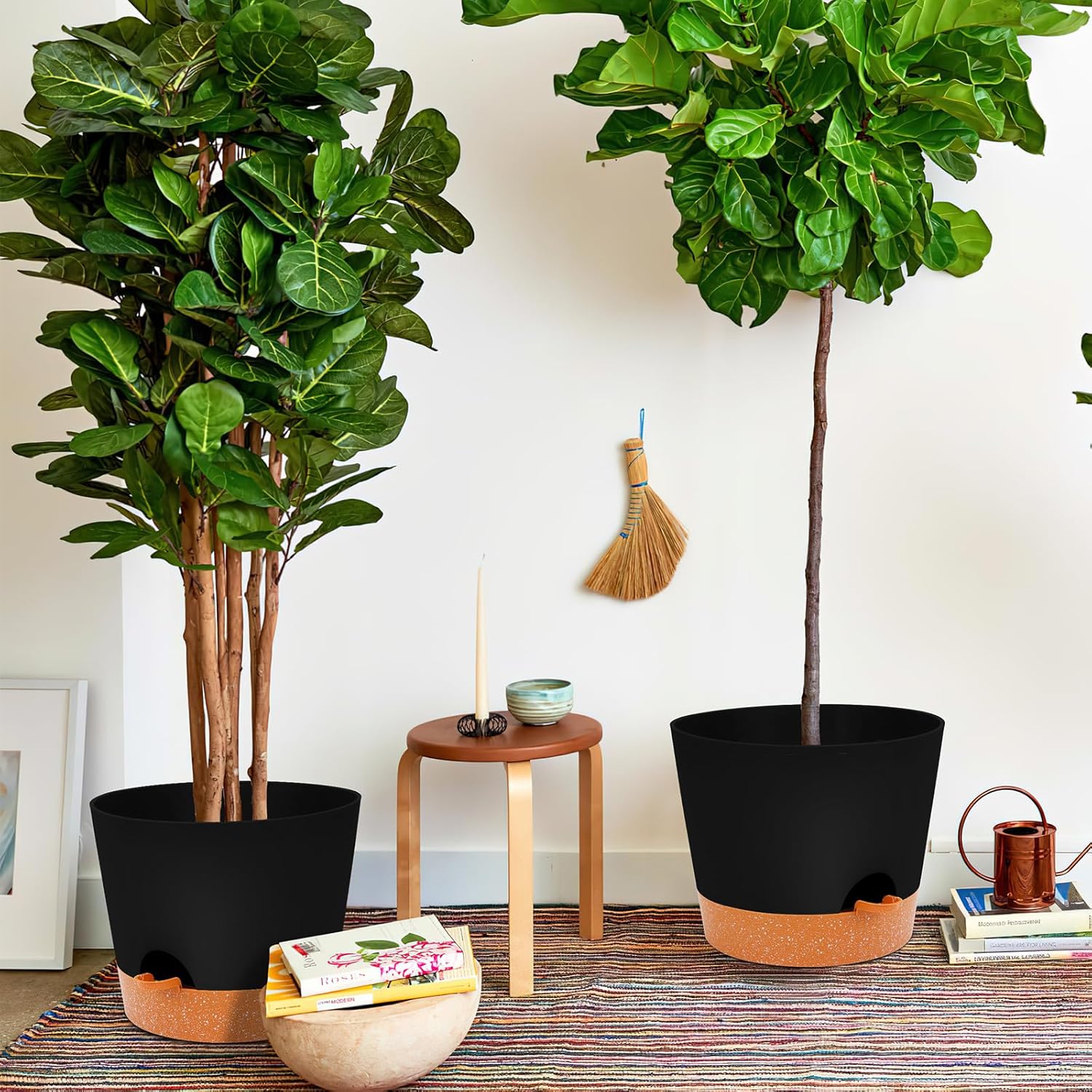 GARDIFE 12 inch Plant Pots, planters,Self Watering Pots, 2 Pack Large Plastic Flower pots with Deep Reservior and High Drainage Holes for Indoor Outdoor Plants and Flowers, Black