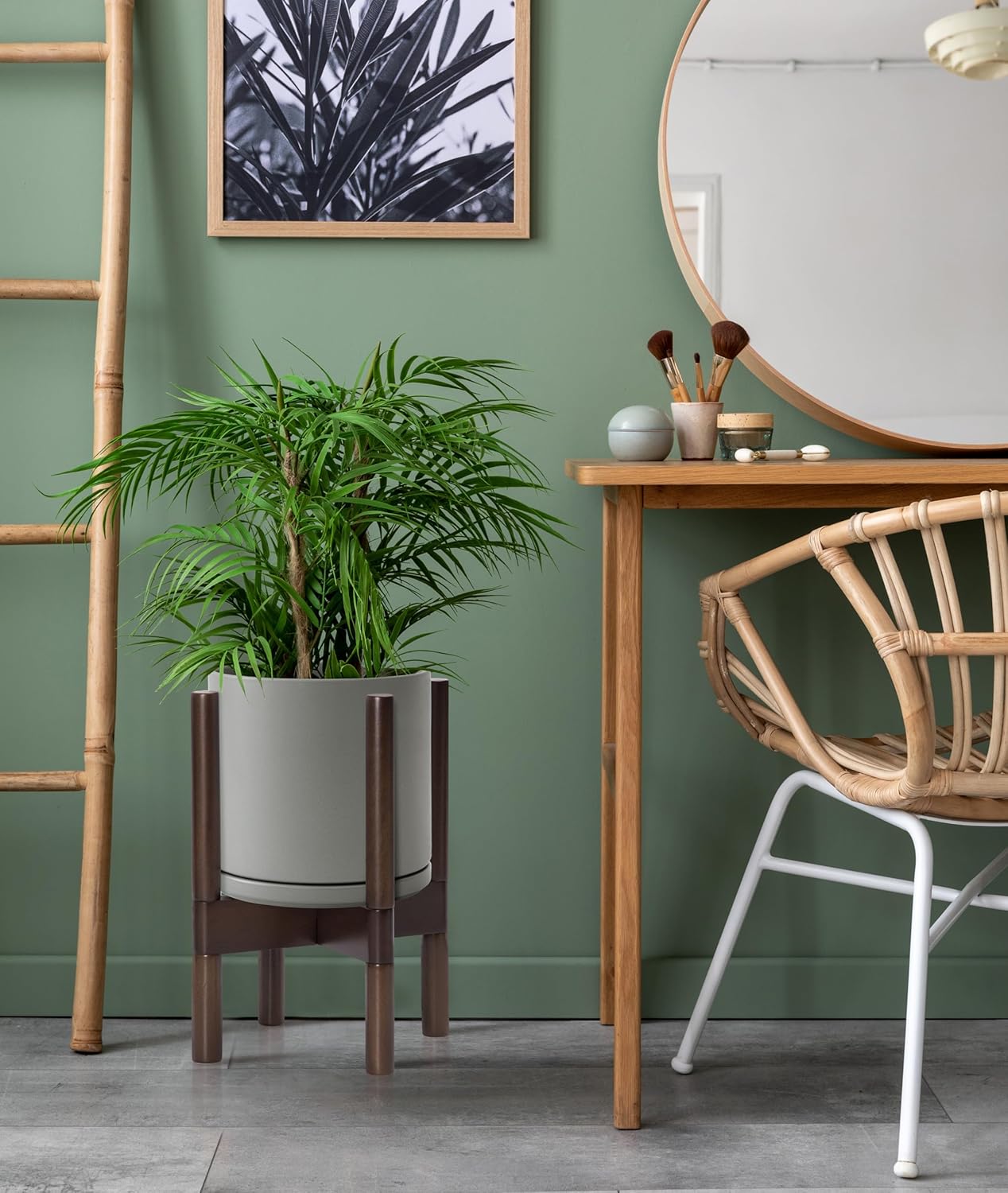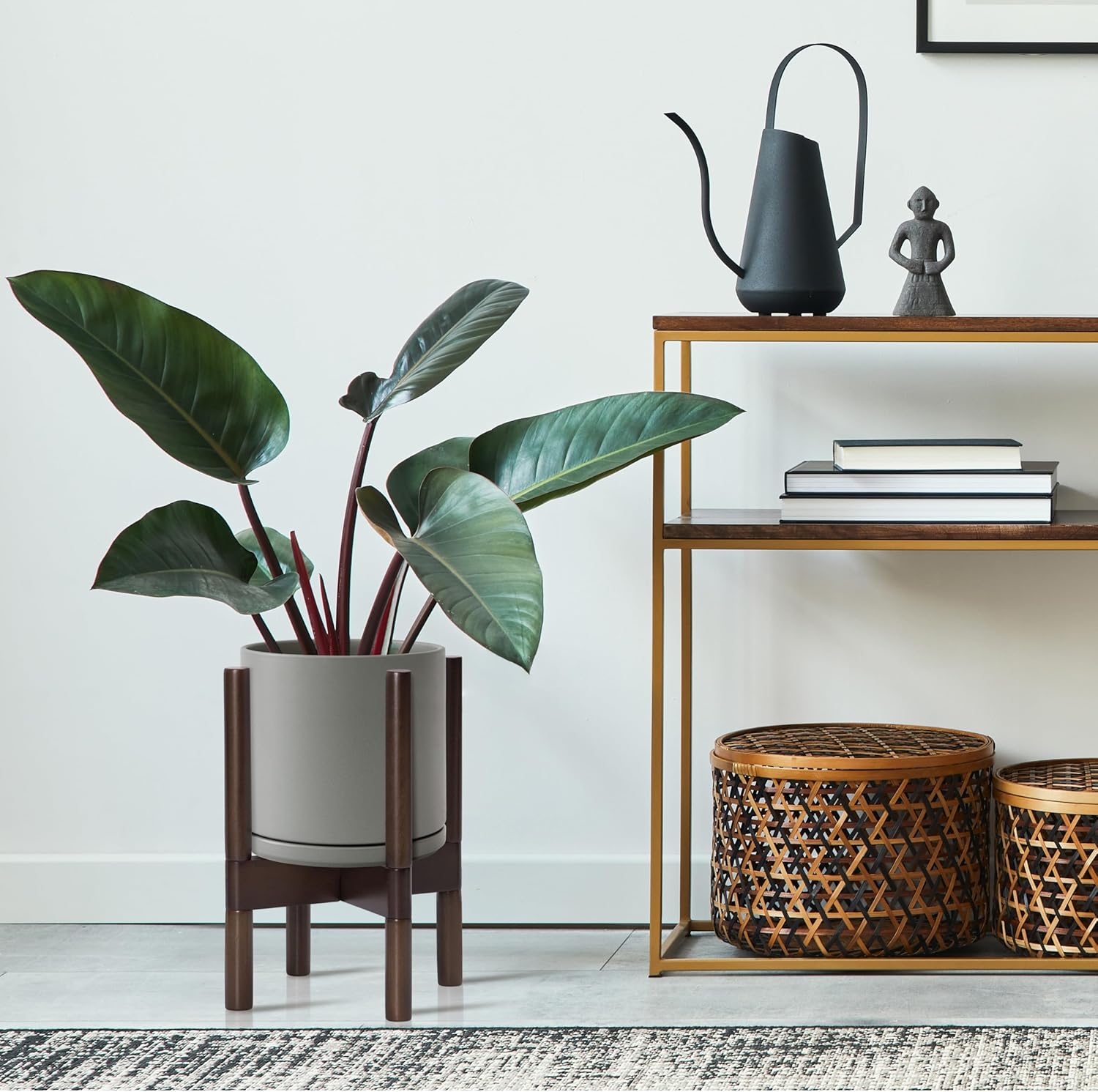 - A Complete Set: Mid-century ceramic planter, combined with a sculptural, solid wood stand that match perfectly together and looks great in anywhere.