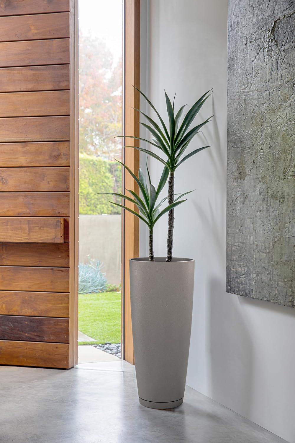 Veradek Vega Round Tall Planter Pots for Indoor/Outdoor Use | Made from Plastic - Stone Mix with Drainage Holes | Perfect for Small to Large Succulent Plants, Flowers, Modern Interior Plants