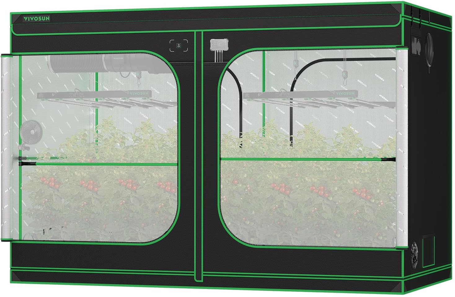 VIVOSUN P105 120"×60"×80" PRO Grow Tent, with Thick 1 inch Poles, Strengthened High Reflective Mylar Oxford Fabric, Extra Hanging Bars & High CFM Kit for Hydroponics Indoor Plant for VSFD6500×2