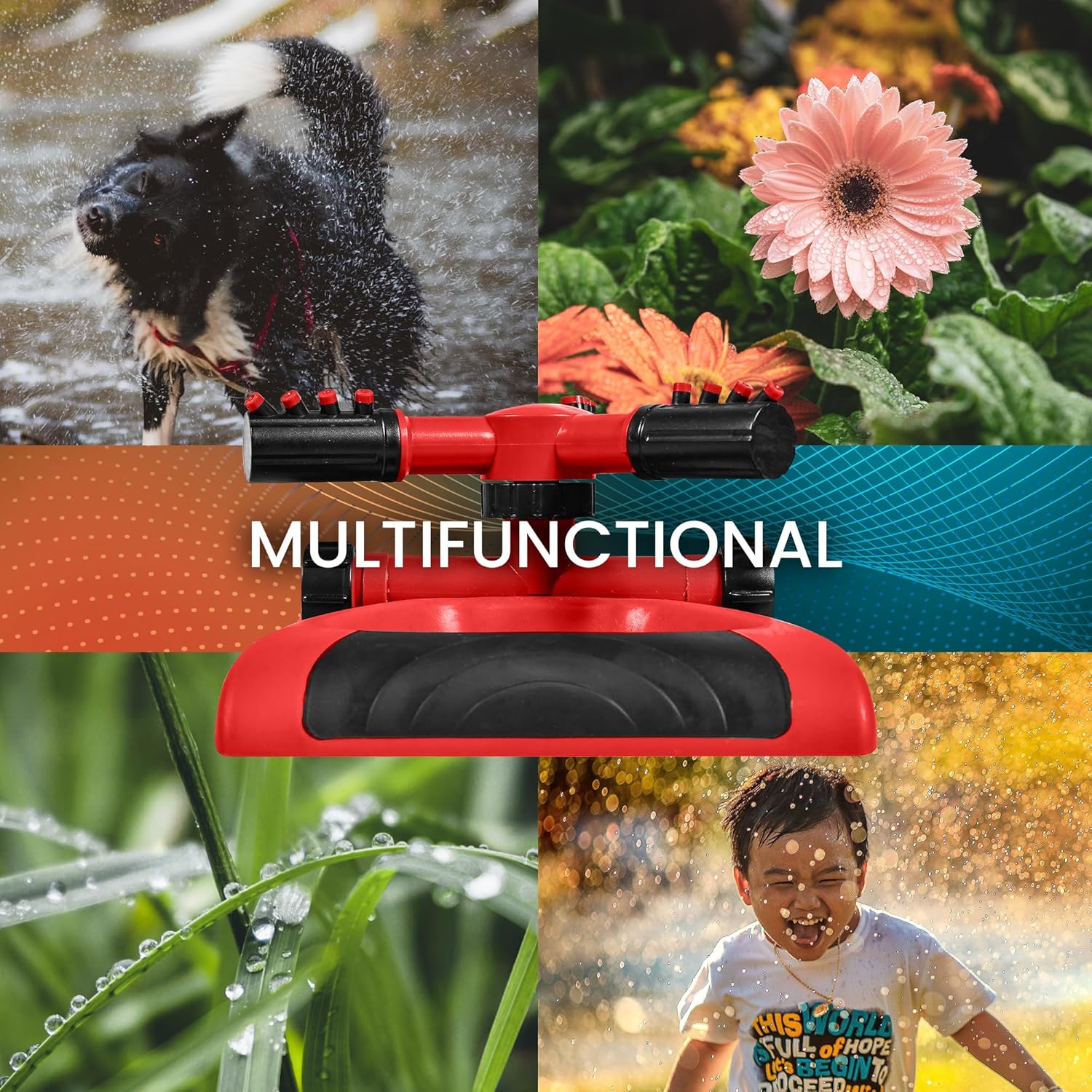 - Adjustable Rotating Arms: The Joeys Sprinklers features 3 fully adjustable arms. Customize your spray pattern to suit your area and distance.