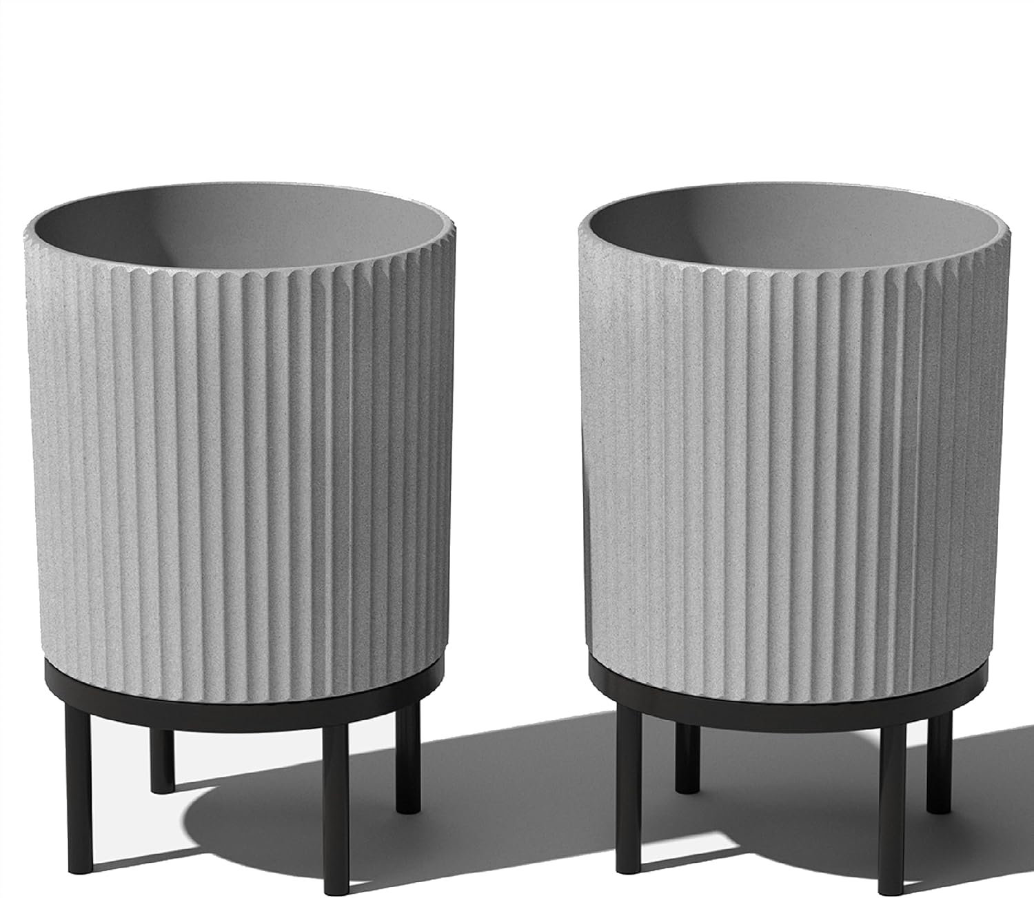 Veradek Demi Series Round Planter w/Stand for Porch/Patio | Durable Plastic-Stone Composite & Wooden Stand | Modern Décor for Tall Plants, Flowers