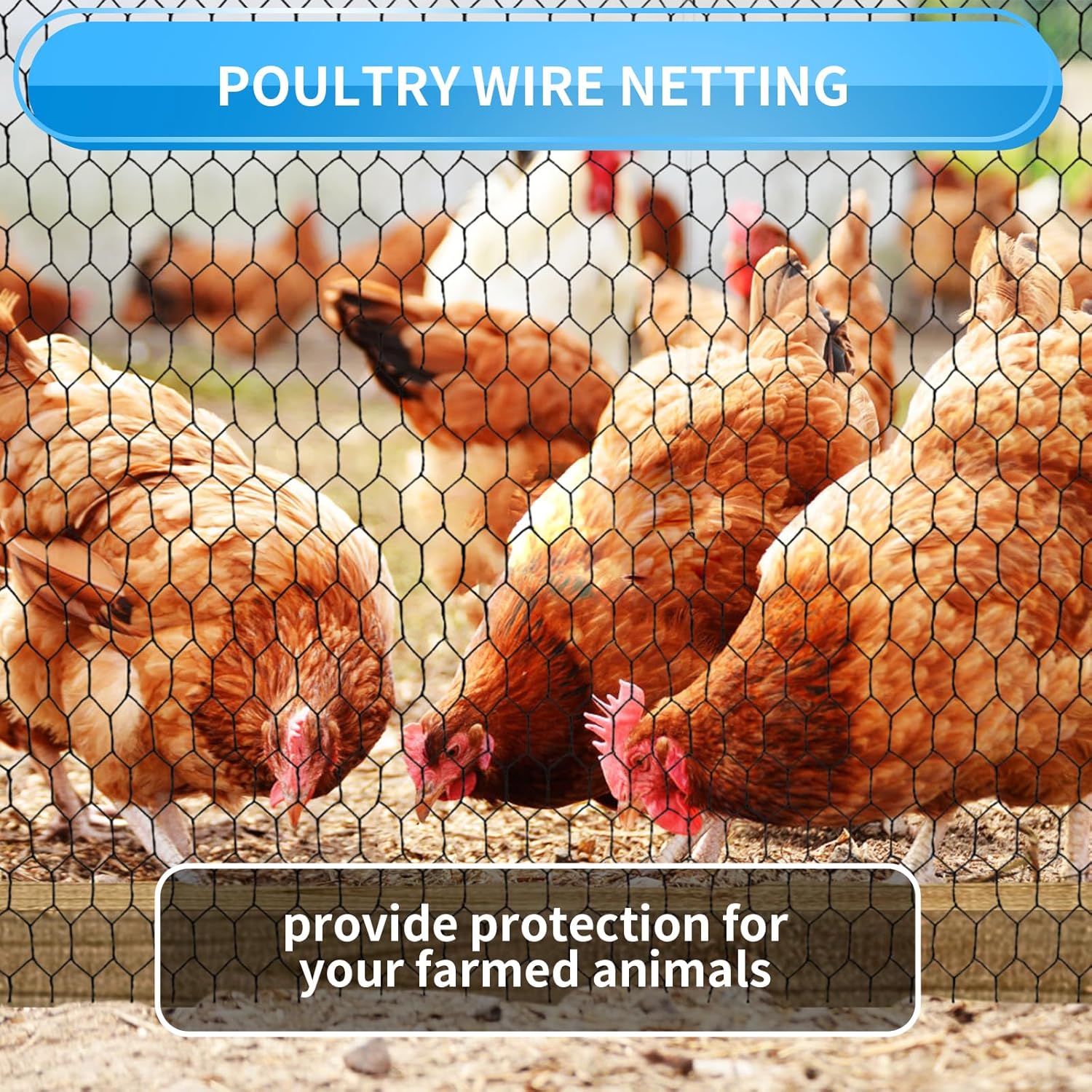 60'' x 150' Black Chicken Wire Mesh Fence, 20 Gauge Galvanized Poultry Netting and 1 inch Garden Mesh Fence Roll, Chicken Wire for Floral Arrangements/Crafts/Farm/Livestock/Pet Protection