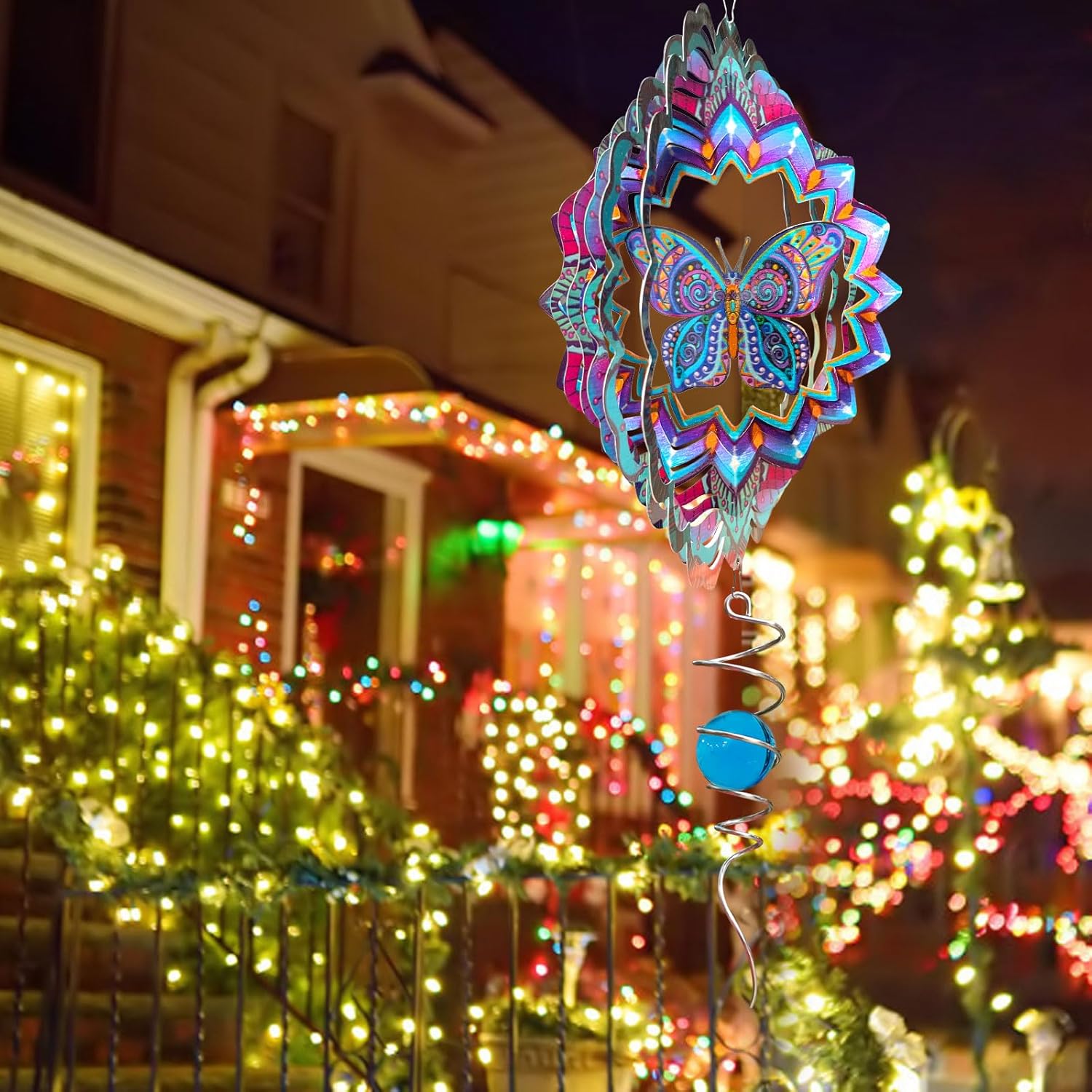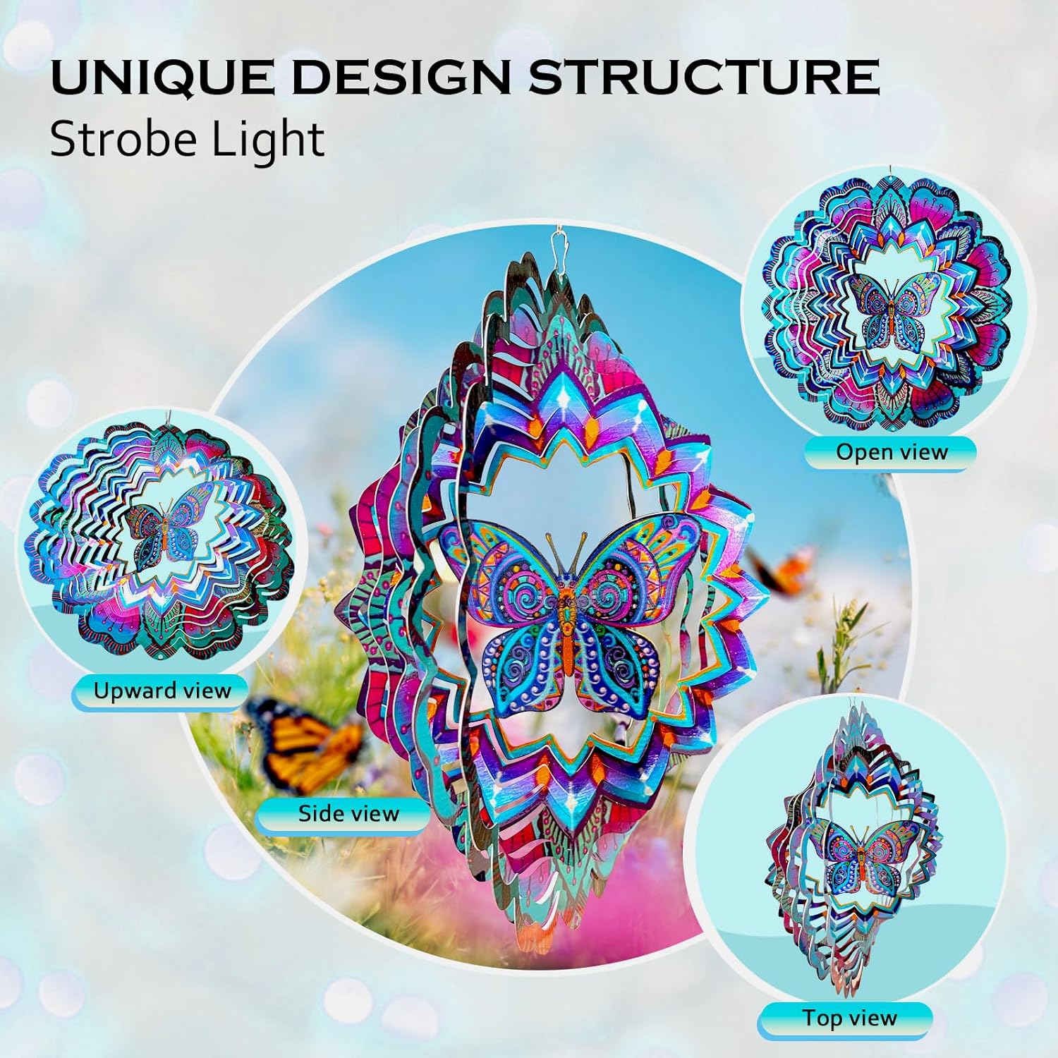 FONMY Wind Spinner Butterfly 12 inch 3D Stainless Steel Wind Sculpture Worth Gift Christmas Decor. Laser Cut Metal Art Geometric Pattern - Hanging Mandala Wind Spinners, Kinetic Yard Art Decorations