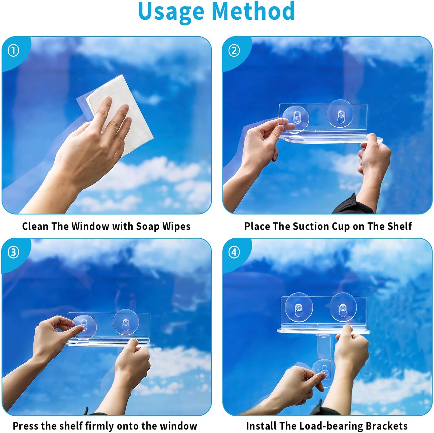 - MORE STRONG CONSTRUCTION:Our window plant shelf is made of 5mm thick, high-quality transparent acrylic and minimalist design, keep your window view while safely fixing objects. And each of our window sill suction cup planters comes with a load bearing bracket for greater support and stability