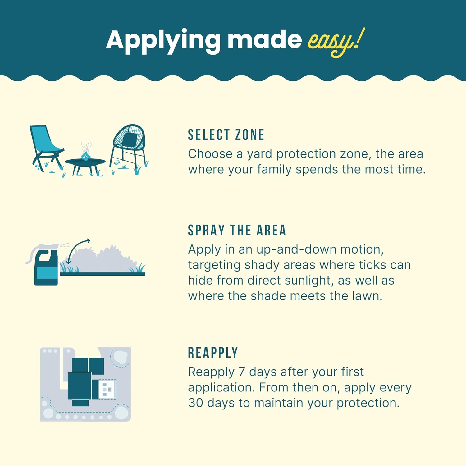 - EASY APPLICATION: Applying our tick yard spray is a breeze with our ready-to-use 32 oz. spray. Use the universal hose-on sprayer for quick and effective coverage in just 10 minutes, all while enjoying the refreshing scent of a woodland adventure.