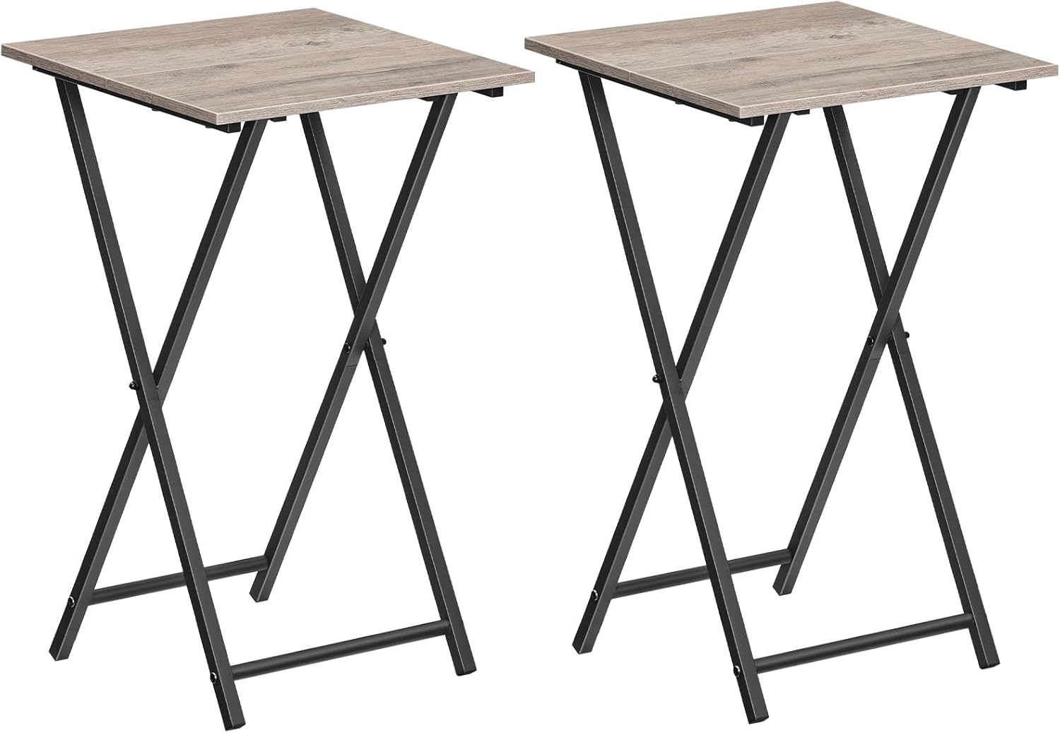 HOOBRO Folding TV Tray Table, Set of 2 Wooden TV Tray, Portable Sofa Side Snack Table, Industrial Desk for Small Spaces, Space-Saving, Easy to Install and Fold, Greige and Black BG27BZP201