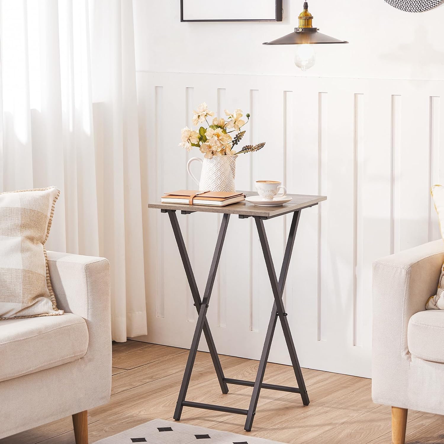 - Multiple Advantages: Don't want the side table taking up too much space when not in use? This TV tray can easily be folded and stored under the sofa, freeing up more common space.When folded, the folding table is portable to be carried anywhere needed