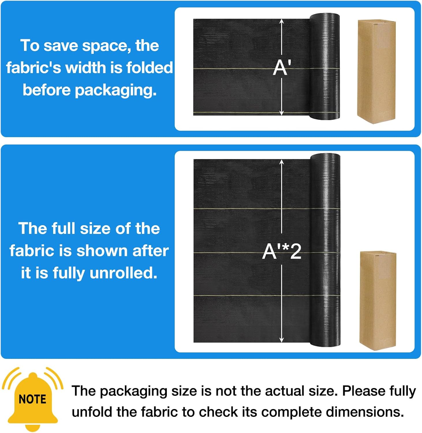 - Premium Landscape Fabric: The weed barrier is crafted from high-quality and durable material, made of woven polypropylene material. ! ! ! Width folded and rolled up packaging so the box is only half the actual width. Open to return to actual size