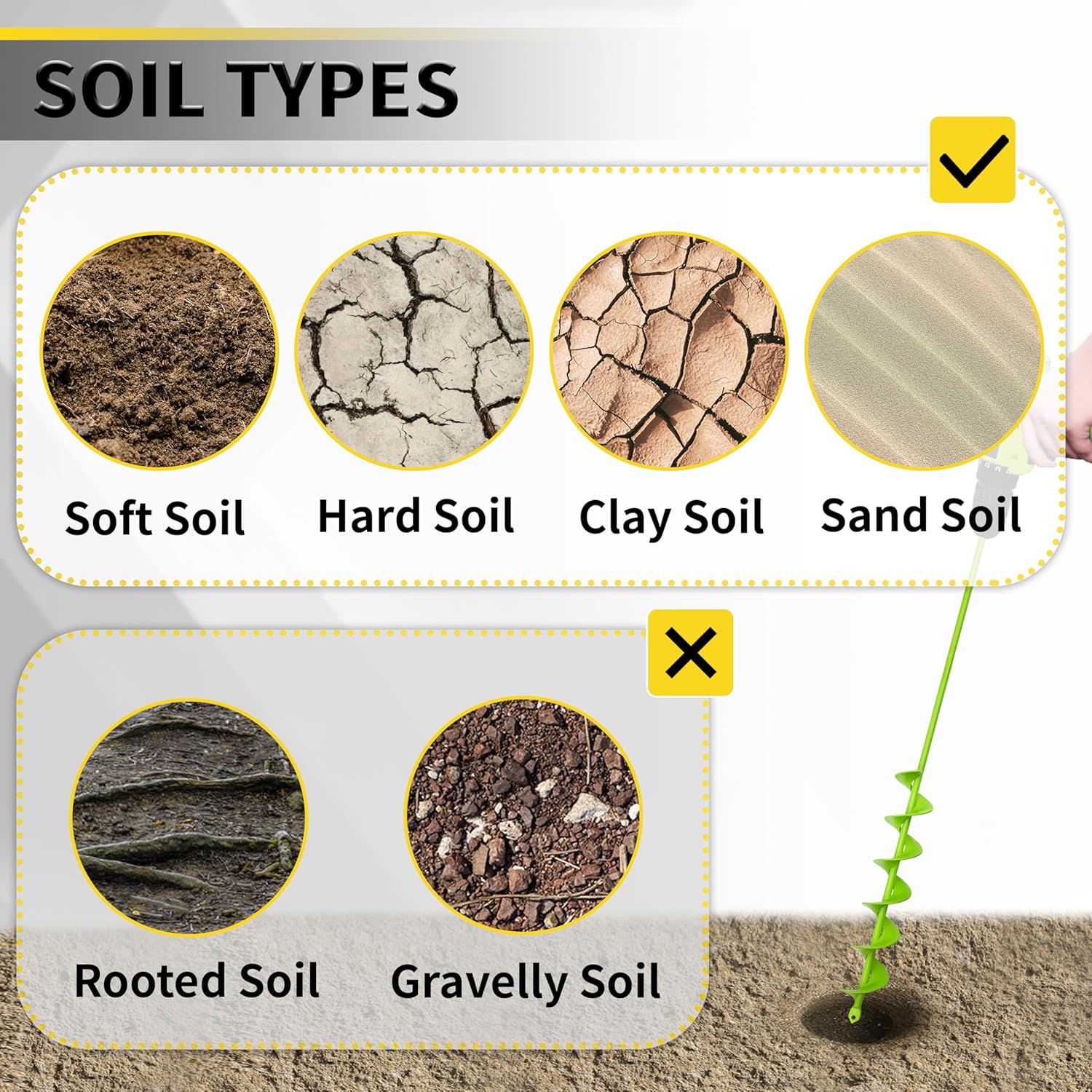 - Widely Applied - This plant auger for drill is perfect for planting bulbs, potted plants, vegetables, flowers, bare root trees and shrubs, turning over soil or planting boxes, mixing seeds, soil, fertilizer, and even digging holes for fence posts, ground lights.