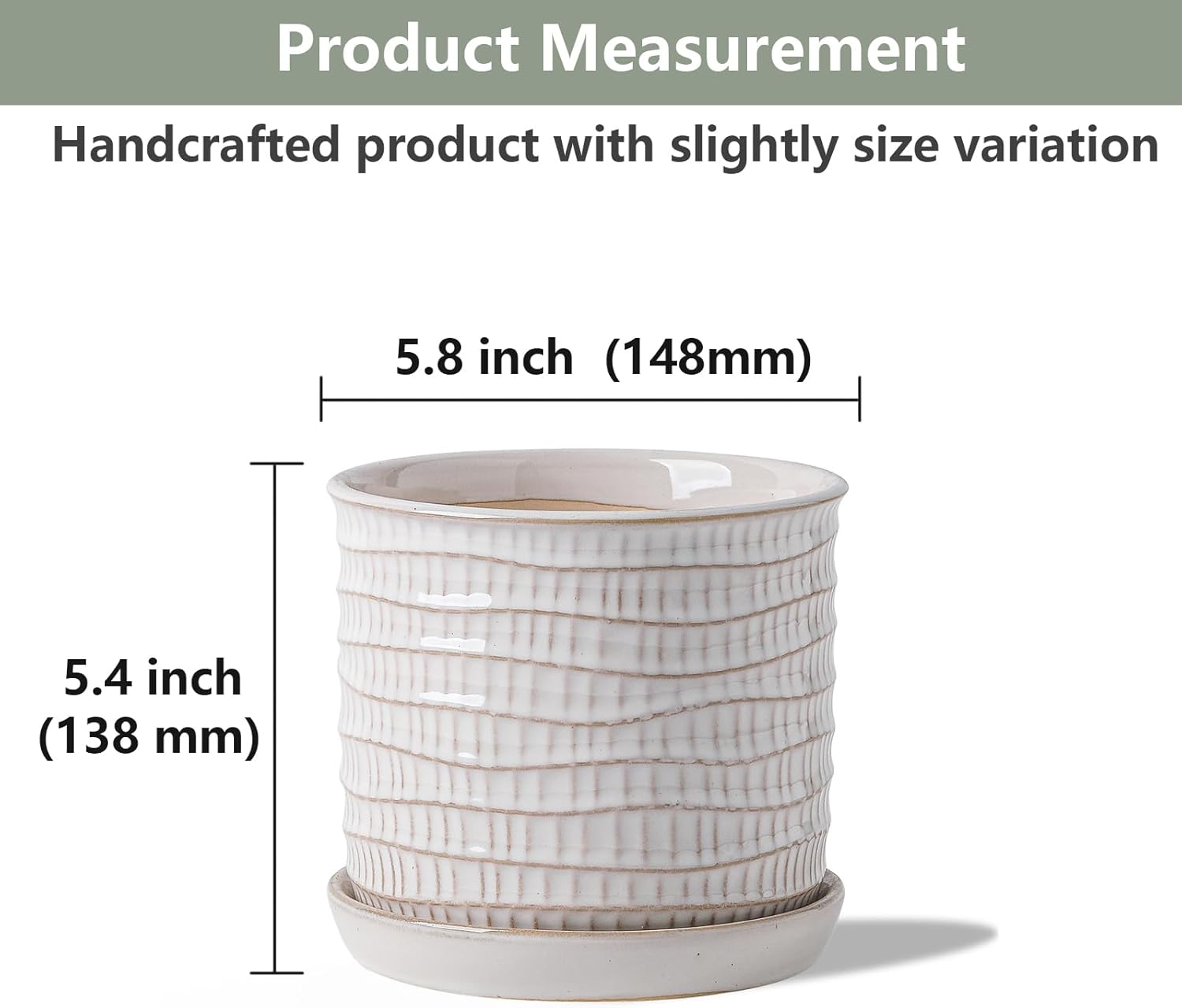 - 6-inch Planter Pot: This pot is 5.8 inches in diameter and 5.4 inches high, with an elegant shape