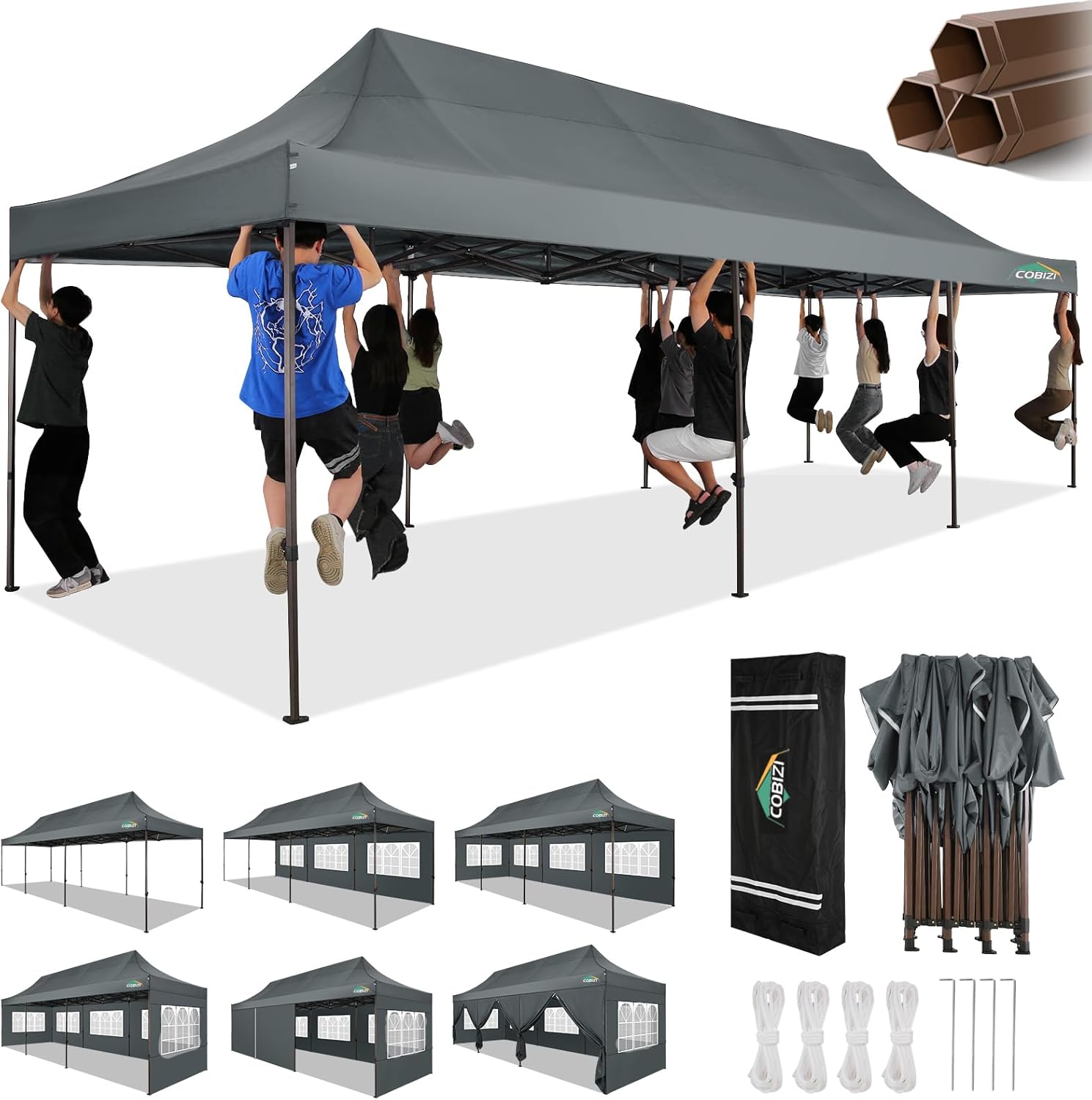 COBIZI 10x30 Pop Up Canopy Tent Heavy Duty with 8 Removable Sidewalls, Commercial Portable Tents for Parties Ez Up Canopy All-Weather Windproof & Waterproof and UPF 80+ Wedding Tent Sun Shelter