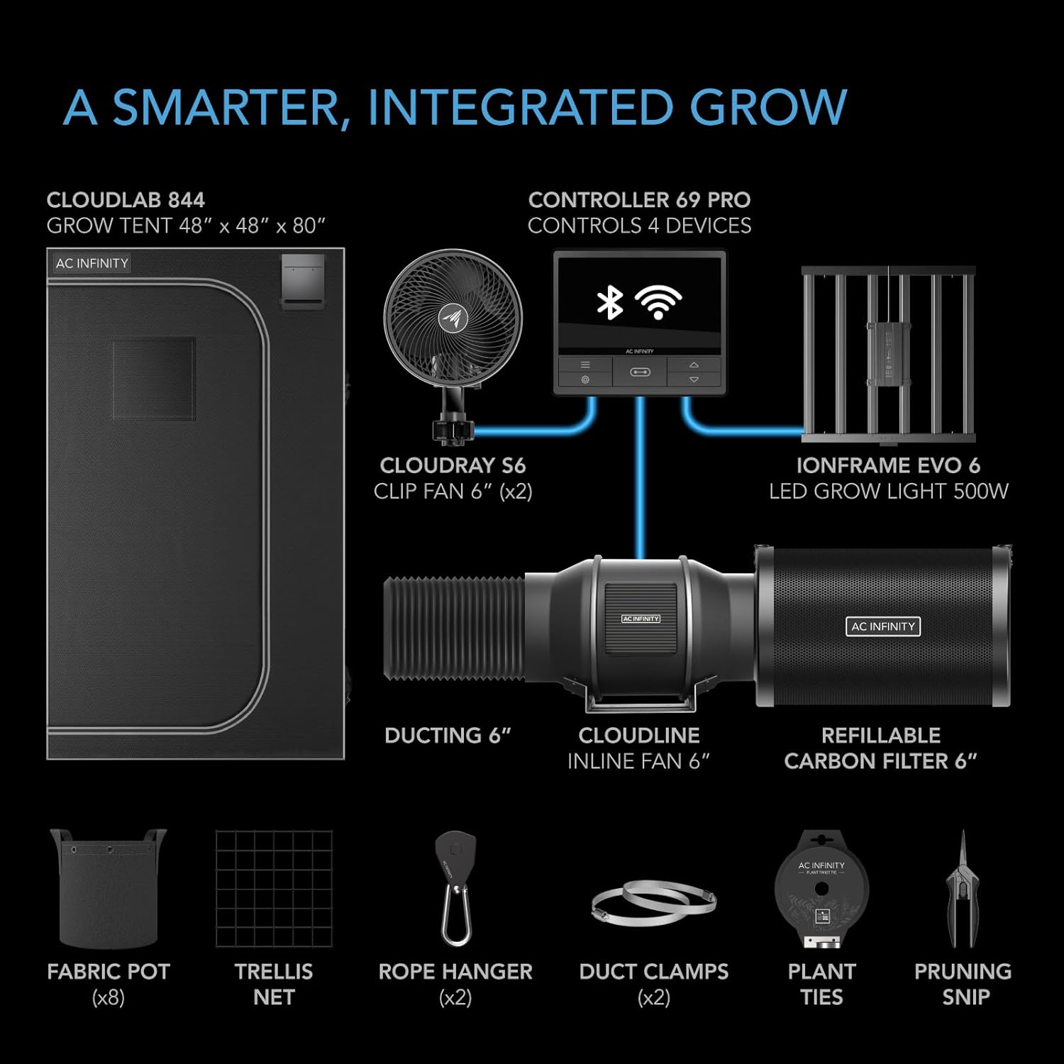 - An advance grow tent kit with smart controls and integrated components to start an indoor growing system.