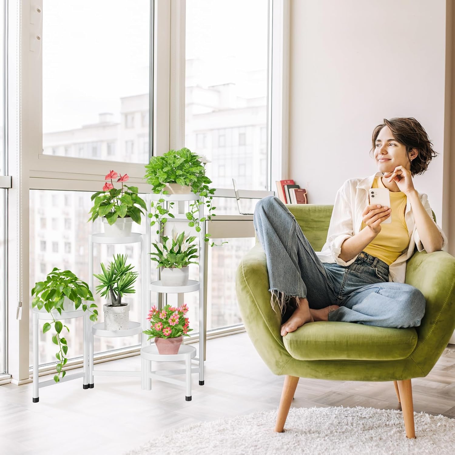 - 7.9-Inch Wide Trays with Rim: This tall plant stand features 7.9-inch round trays, suitable for pots up to 7.5 inches wide. Each tray is designed with raised edges that guard against spills and tipping, keeping your plants safe and steady