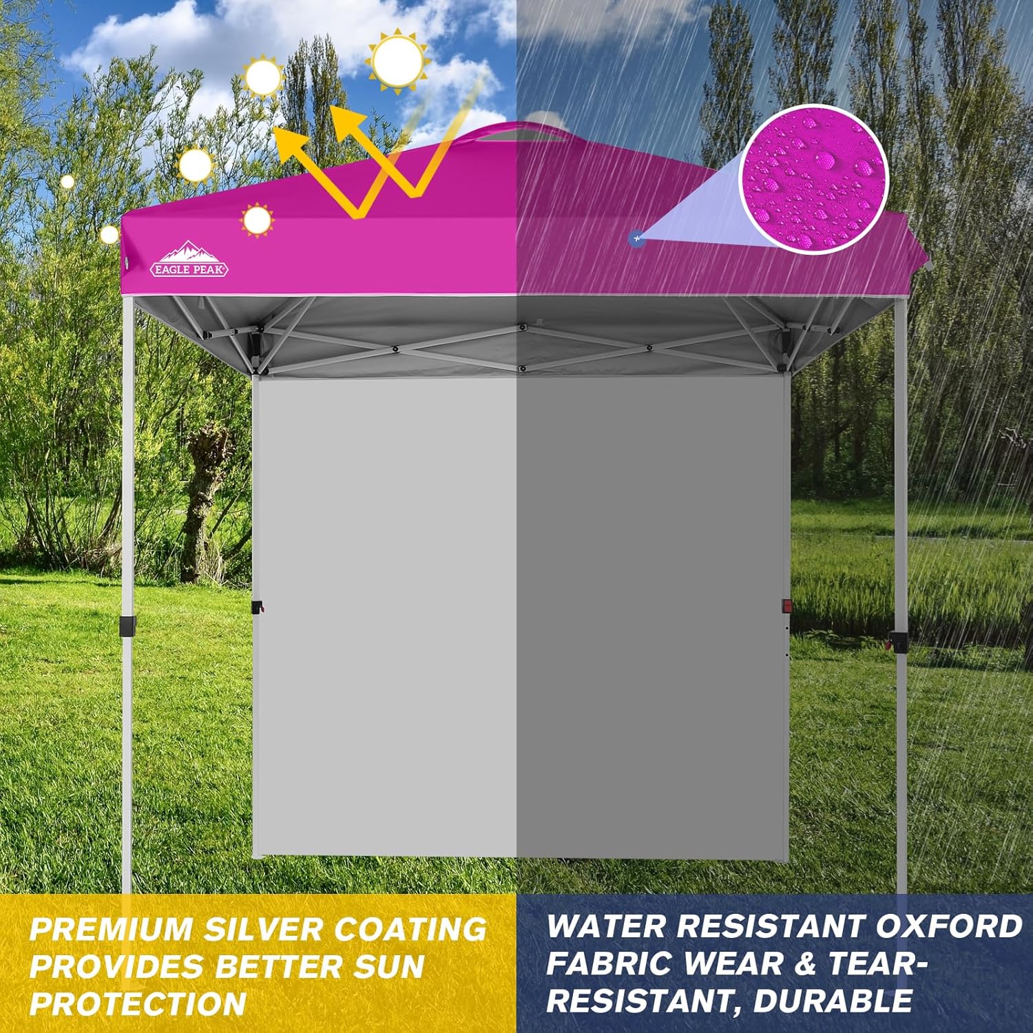 EAGLE PEAK Pop Up Canopy Tent with 1 Sidewall, Easy Setup Event Tent, Outdoor Sun Shade, Wheeled Carry Bag, Stakes and Guy Ropes, Instant Canopy 6.6x6.6, Pink