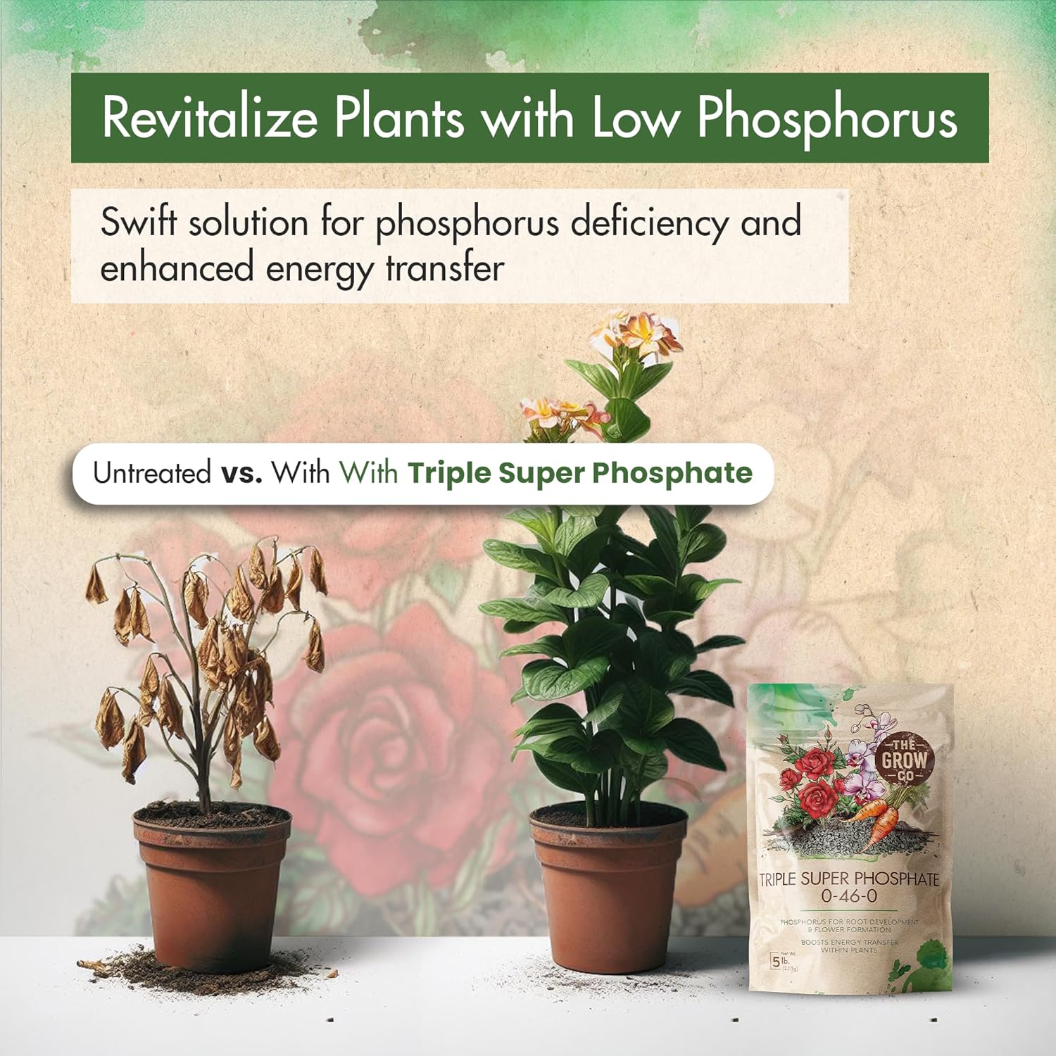 - HIGH PHOSPHORUS FERTILIZER: Unlike other phosphorus fertilizers, our triple super phosphate has a 0-46-0 ratio of phosphorus for plants, helping plants fight phosphorus deficiency & grow healthier.