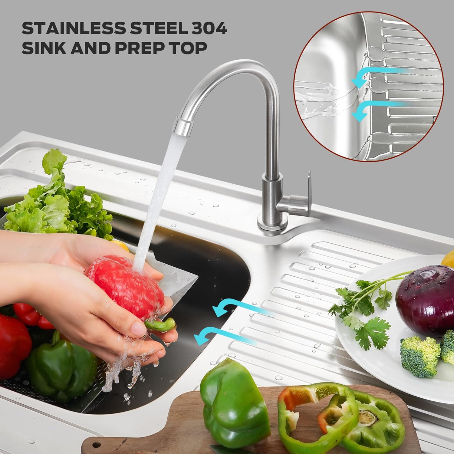 - Multi-Function: The freestanding 304 stainless steel outdoor sink station with drainboard is fantastic as commercial sink or domestic use such as outdoor restaurant sink, indoor or outdoor kitchen sink as its unique wheels. Meet your multiple needs in your house