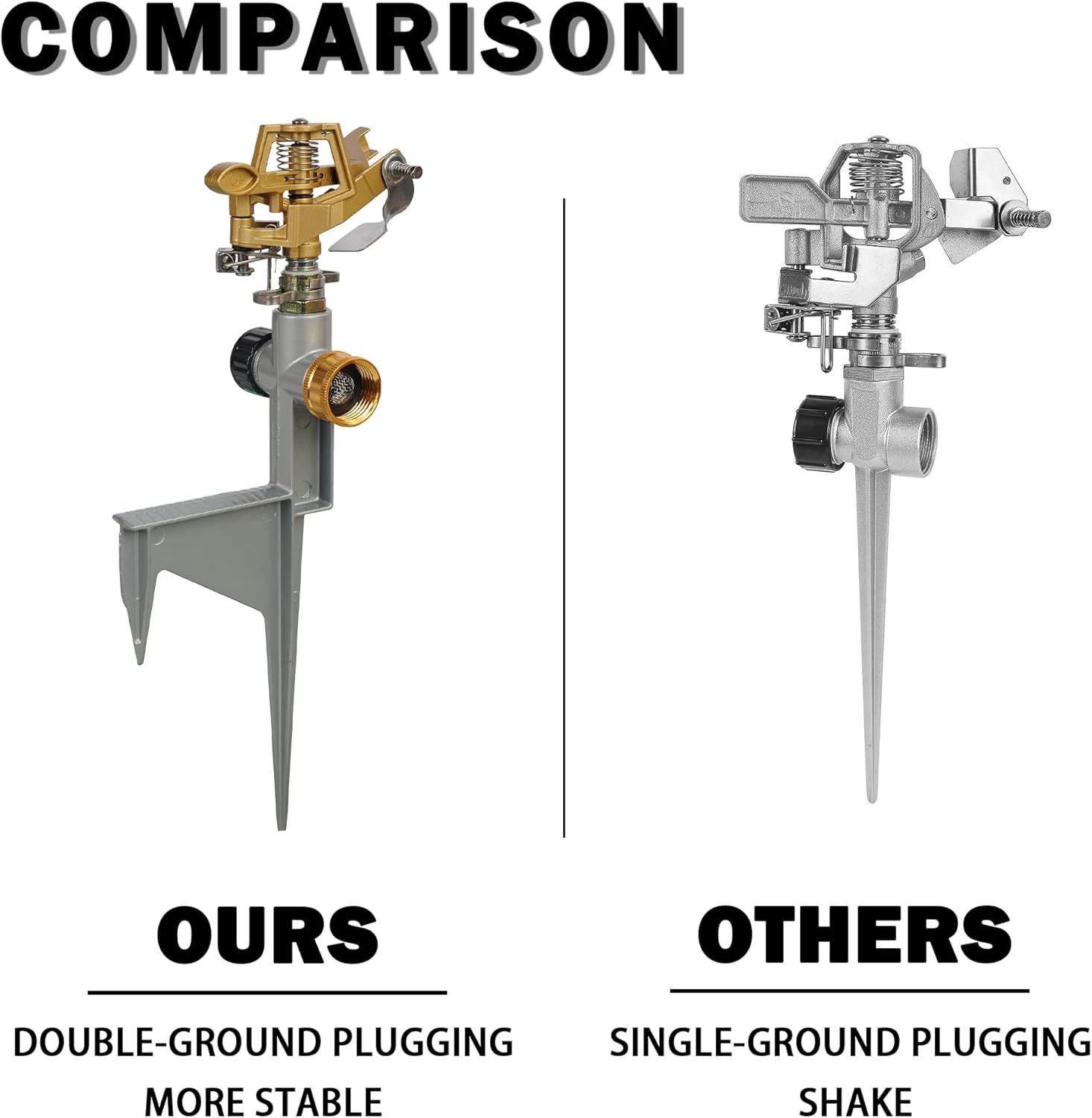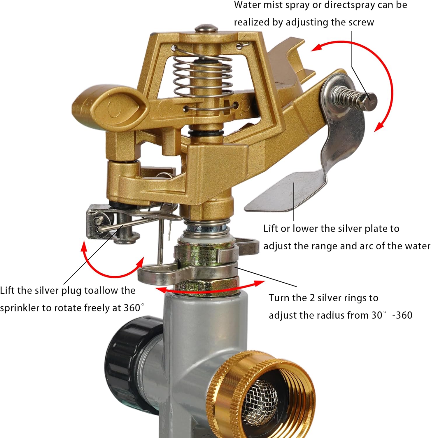 - High Quality: Constructed from high-quality zinc alloy and stainless steel, the garden sprinkler head, along with its sprinkler crafted from high-quality zinc alloy, is robust, durable, and waterproof, offering rust resistance for extended use.