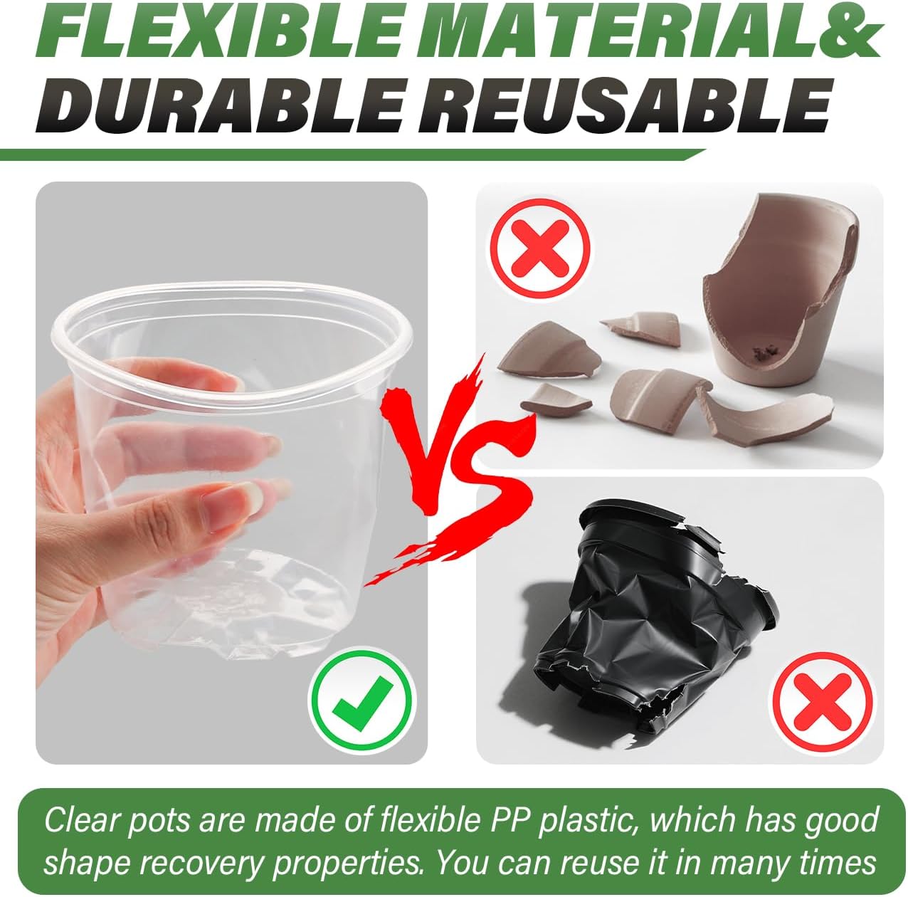 - 【Clear Plastic Pots】Clear transparent plastic plant pots to watch the seeds germination, roots starting growing every day. Made of fresh new plastic PE, no ordor or harm for plants growing, BPA free.