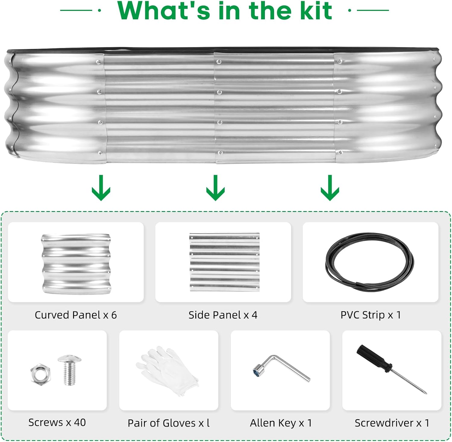 - What You Get: we have included Galvanized raised garden bed kit with detailed assembly instructions, rubber edge strips, safety gloves , wrench tools and with galvanized nuts and bolts in the box .These essential tools elevate your overall planting and gardening adventure.