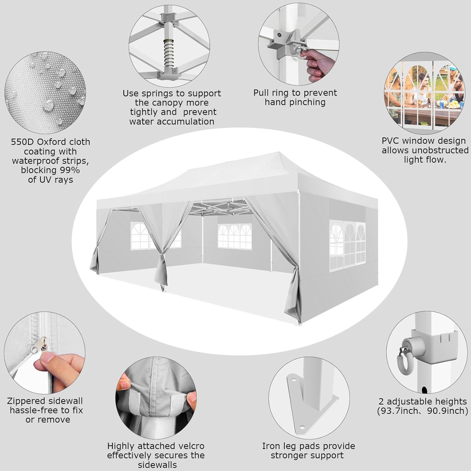 COBIZI 13x26 Pop up Canopy Heavy Duty with 6 Sidewalls, Easy Set-up Commercial Outdoor Party, 100% Waterproof Wedding Canopy Gazebo, 2 Height Adjustable with Wheeled Bag,White
