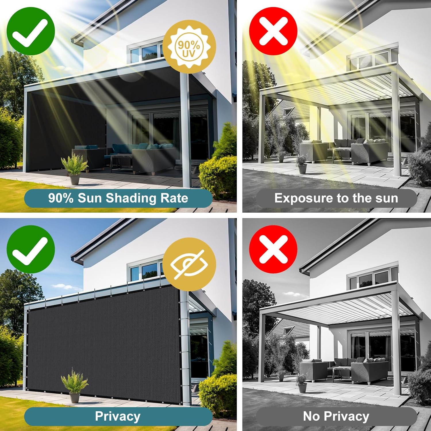 - Multiple Applications: This shade trap screen creates a comfortable outdoor seating area for you, offers a level of privacy from the outside without completely blocking your view of it. You can also use it to shield your greenhouse and plants from excessive sun exposure, or cover your pet house. Don't let the sun dictate your outdoor activities; take control with Shade&Beyond premium shade solution