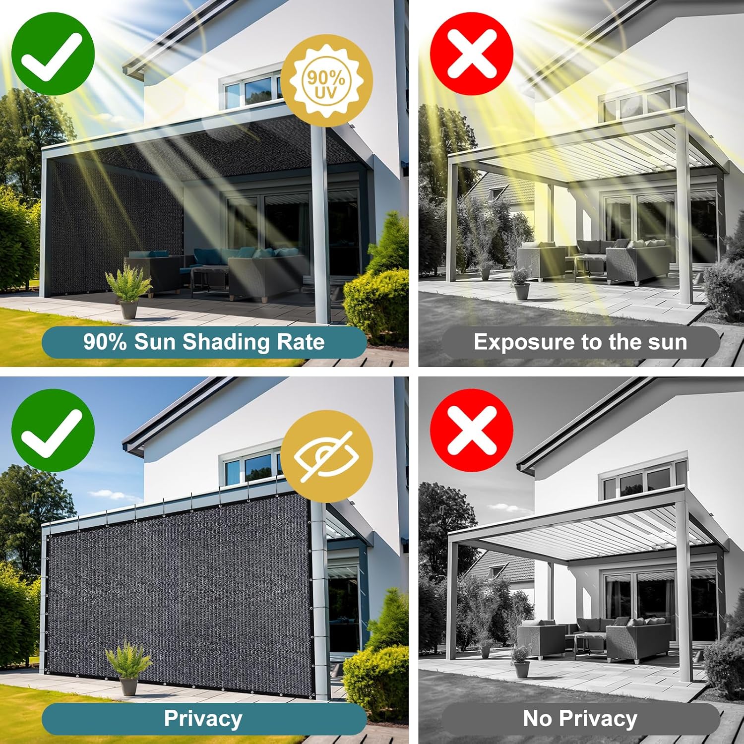 - Multiple Applications: This shade trap screen creates a comfortable outdoor seating area for you, offers a level of privacy from the outside without completely blocking your view of it. You can also use it to shield your greenhouse and plants from excessive sun exposure, or cover your pet house. Don't let the sun dictate your outdoor activities; take control with Shade&Beyond premium shade solution