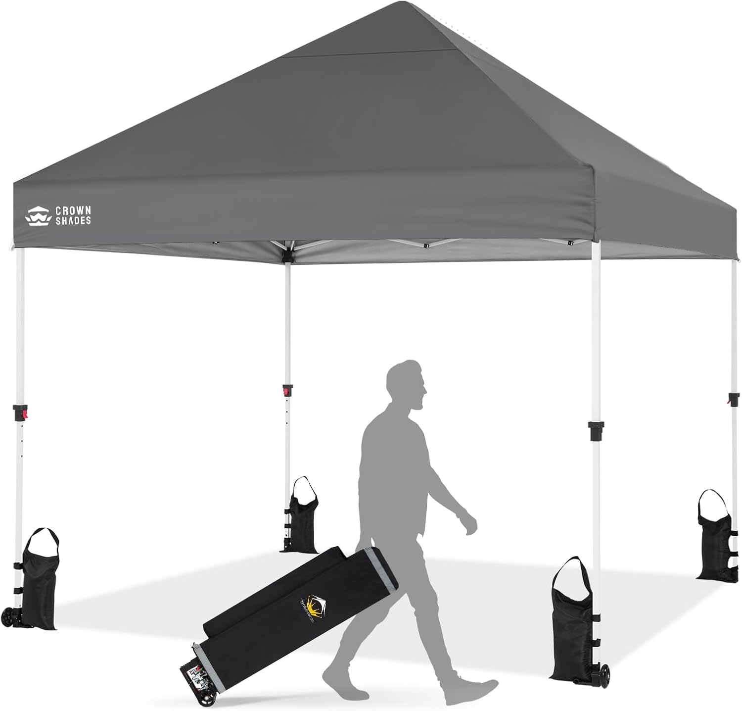 CROWN SHADES Pop Up Canopy Tent, 8x8 Commercial Canopy Tent with 4" Wheels, 4 Upgraded Weights, Patented Centerlock, 400D Strength Oxford Fabric, Sto'N Go Bag, Gray