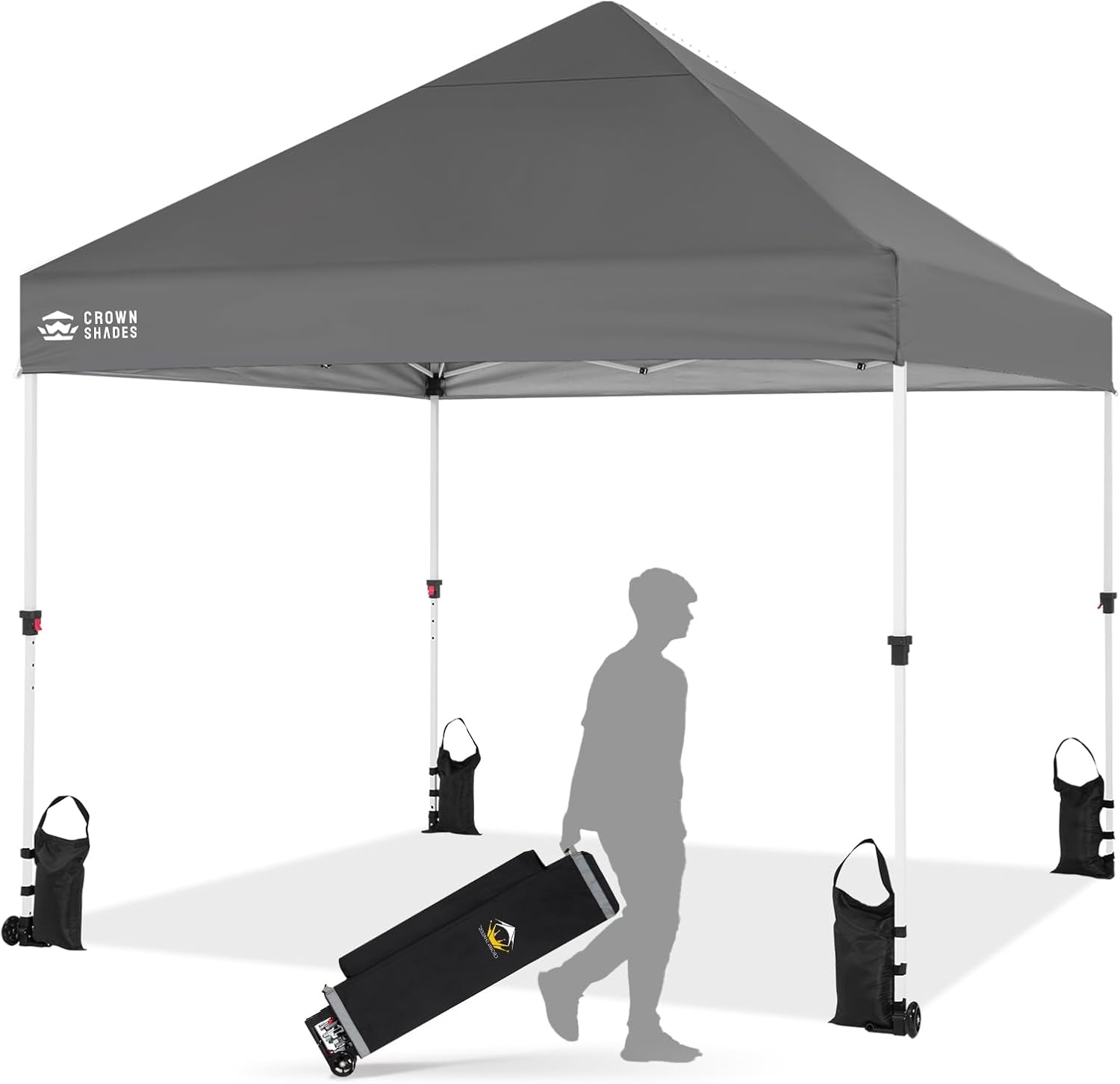 CROWN SHADES 10x10 Heavy Duty Canopy - Premium Pop Up Canopy Tent - Extra Sun Shade Protection with 400D Strength Oxford Fabric - Great for Trade Shows, Events, Tailgates & Commercial Use, Gray