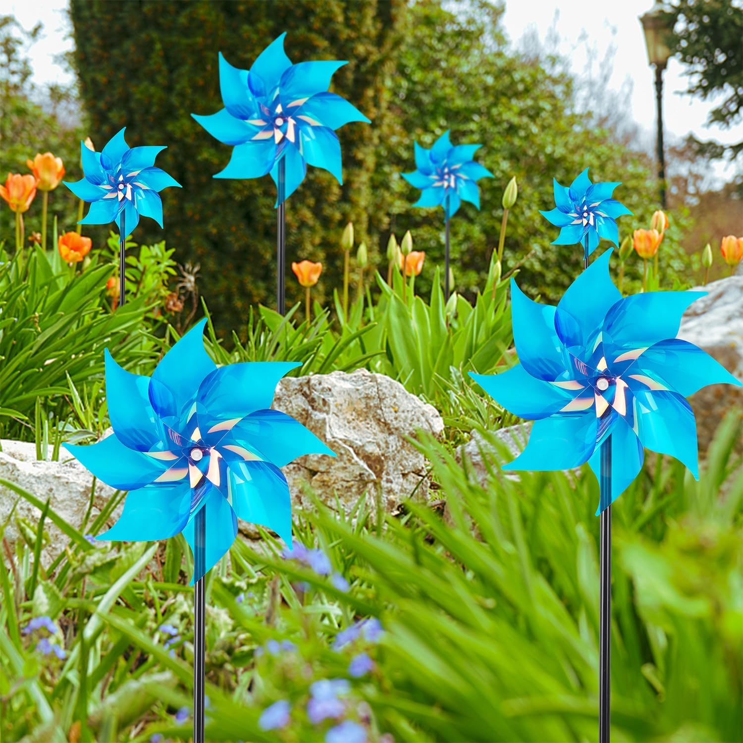 - Humanitarian Solutions: These blue Mylar pinwheel will reflecting colorful, they are made of safe, non-toxic plastic material that will not harm the environment and animals. Instead of frightening and harming birds, our bird repellent pinwheel device humanely scares them away by reflecting visual light