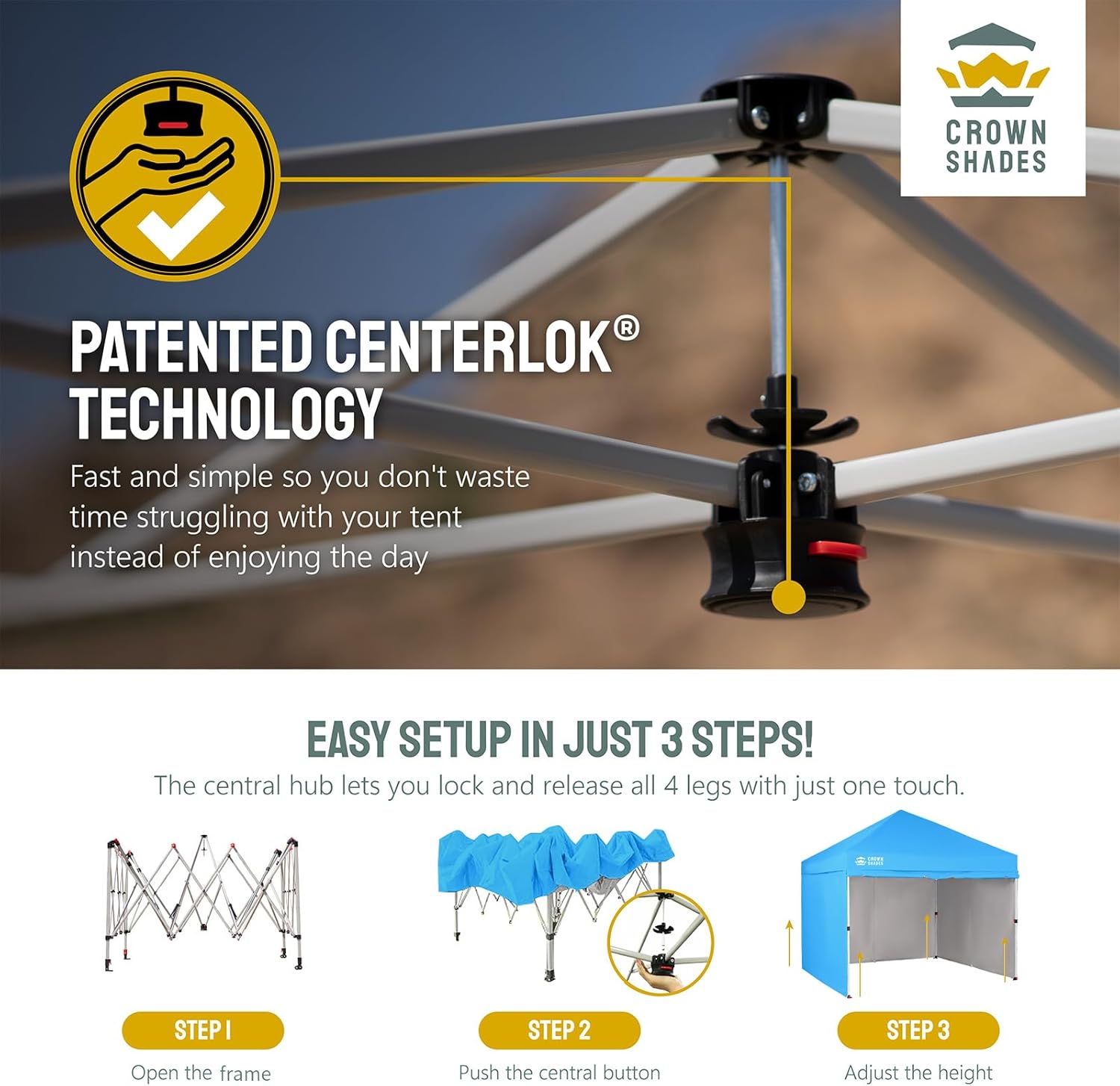CROWN SHADES 10X10 Comercial Instant Canopy Pop Up Tent with Center Lock (10x10 with 4 Sidewalls, Sky Blue)