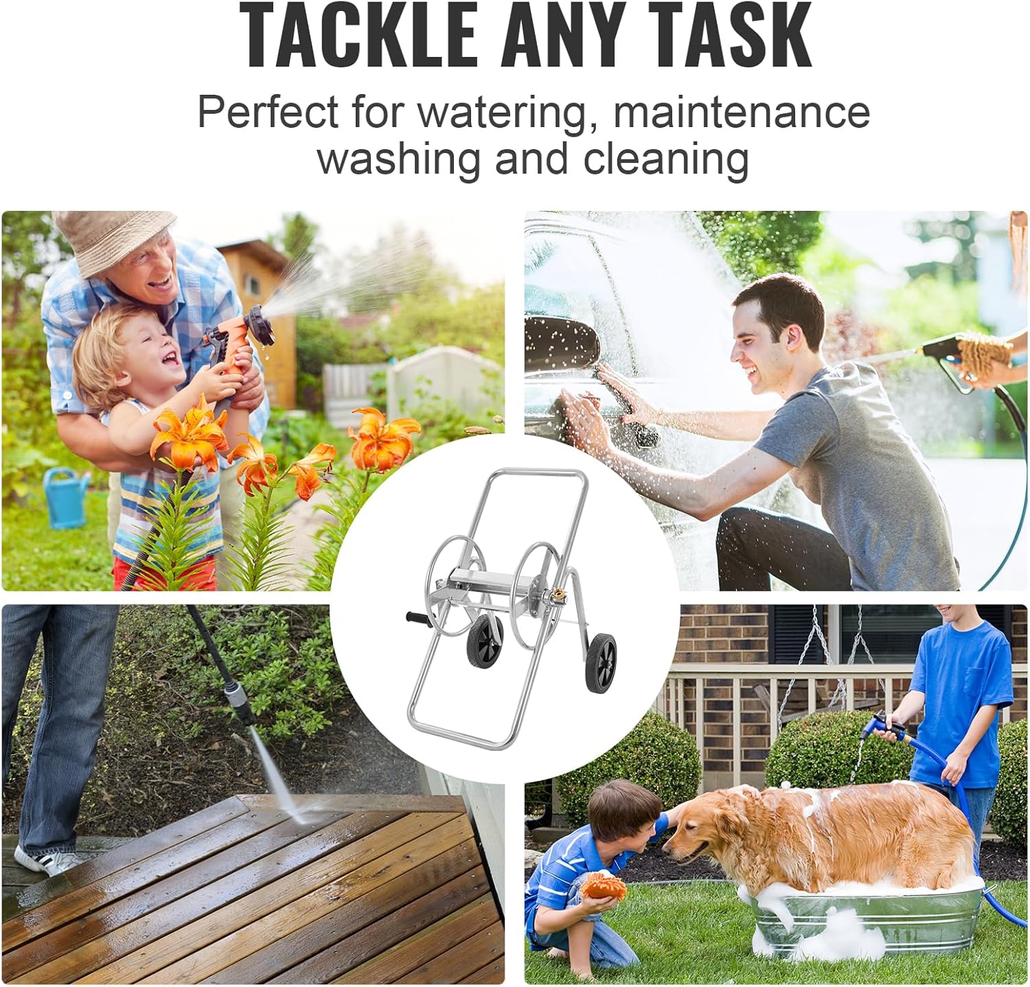 - Versatile Application: The water hose reel cart is widely used in residential gardens for various purposes such as watering plants, maintaining lawns and grassy areas, irrigation in agriculture and farming, vehicle washing, general cleaning, and other outdoor activities.